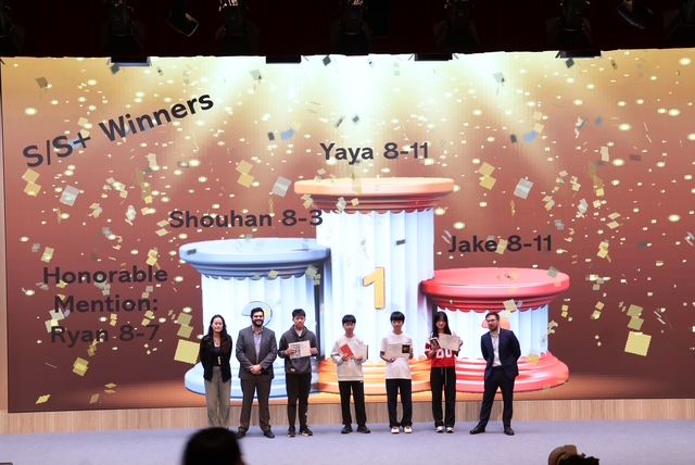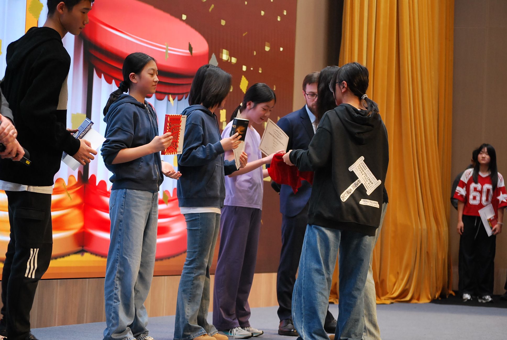 获奖选手们在全体师生的祝贺中上台领奖,老师们赞扬了他们的流利表达、创意构思以及敢于在全年级面前自信发声的勇气。但真正的“赢家”,远不止领奖台上的几位。从构思主题、反复修改稿件,到最终在舞台上自信呈现,每一位参赛者都完成了一次语言能力与自我成长的历练。通过这段经历,学生们不仅锻炼了批判性思维、沟通与创造表达的能力,更体会到“言语的力量源自真诚与连接”。