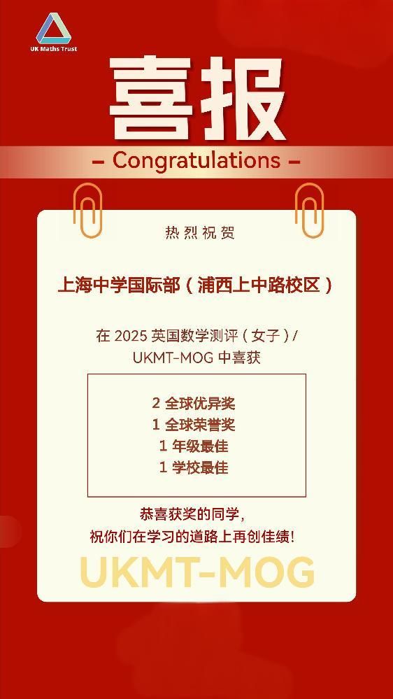学科竞赛 |2025 学年英国数学测评(女子)(UKMT-MOG)获奖