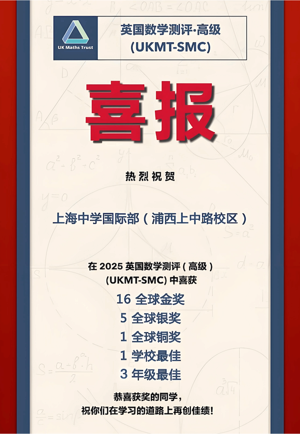 学科竞赛 |2025学年英国数学测评(高级)(UKMT - SMC)获奖