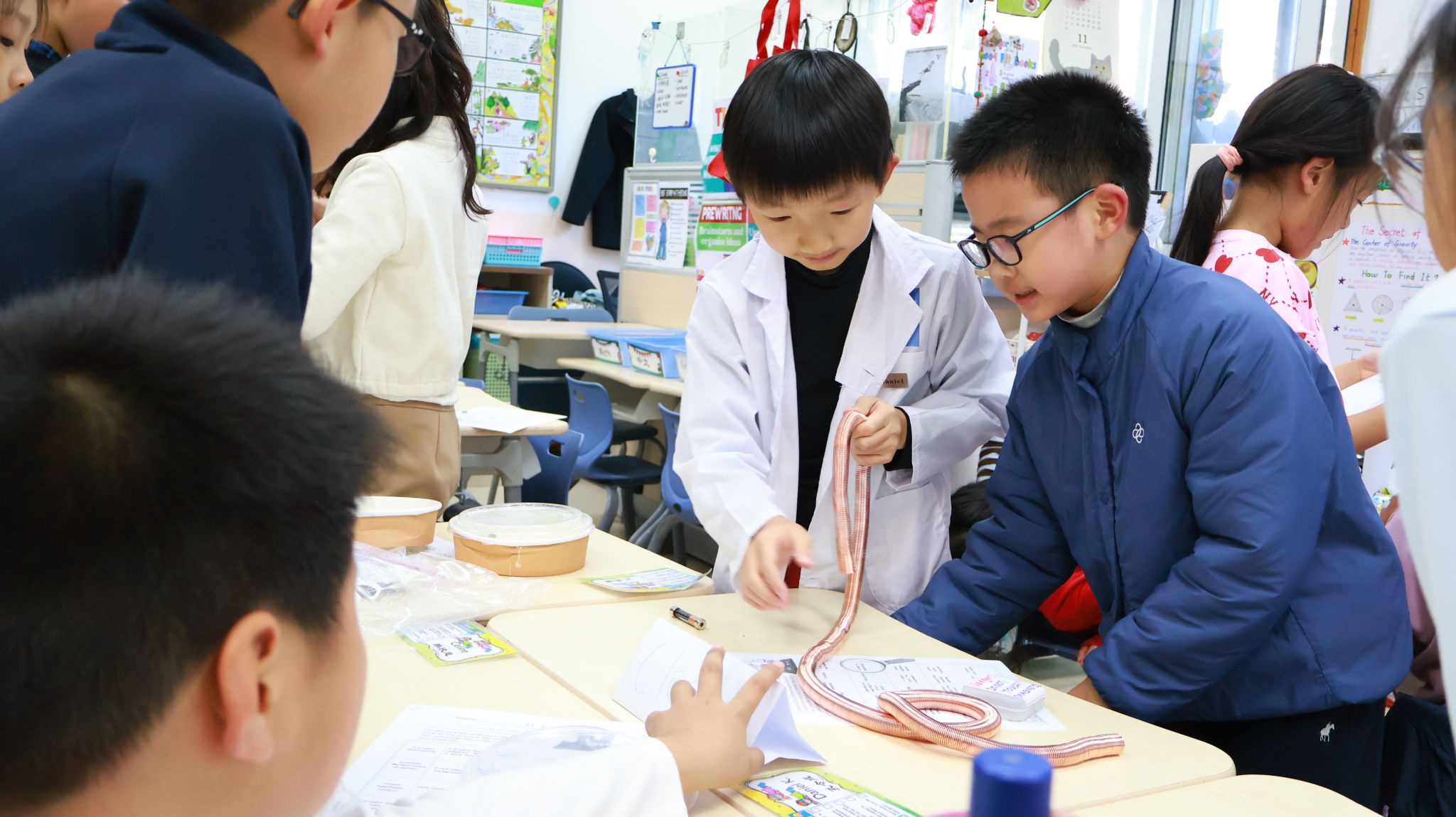 本周,二三年级的科学展在校园里热闹启幕:原本熟悉的教室与走廊,摇身变成了藏满惊喜的“科学小乐园”。孩子们穿梭其间,亲身感受趣味十足的实验,用眼睛捕捉细微变化,用双手触碰科学奥秘,在阵阵欢笑声里,悄悄拉近了与科学的距离。在科学展开始之前的几周里,孩子们按照科学探究的完整流程一步步准备他们的项目:他们先从一个好奇的问题出发,提出自己的假设;接着动手做实验、记录步骤、观察变化:最后,再慢慢分析出结果。经过几周的努力,每位小小科学家都把自己的发现整理成图文海报或短片,并在科学展上自信地向大家展示。