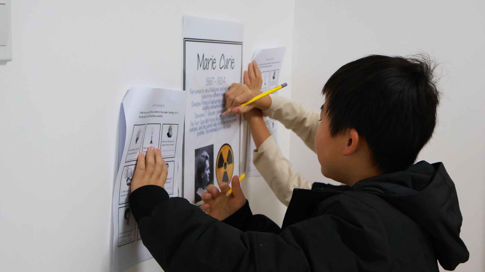 除了动手做实验,孩子们还参与了“科学宾果挑战”。他们在走廊里寻找隐藏的烧杯,玩起了全校范围的科学寻宝游戏;还走进“科学家画廊”,认识了那些改变世界的著名科学家。这些丰富的活动让孩子们在实验间隙也始终保持着兴奋劲儿——不管是动手操作、动脑思考,还是和小伙伴互动,大家都在不知不觉中拓展了自己的知识边界。