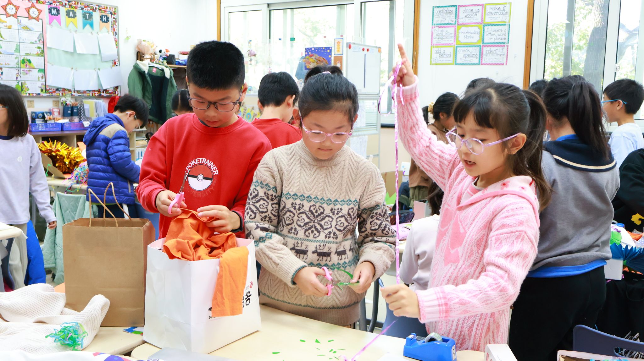 在刚刚结束的STEAM周活动中,三年级的学生们经历了一场充满创意、协作与实践的探索之旅。本次活动聚焦于一个具有现实意义的全球性问题——“快时尚”引发的服装浪费危机。面对废弃衣物,学生们深入思考:我们怎样通过改造旧衣物,来帮助保护我们的地球?