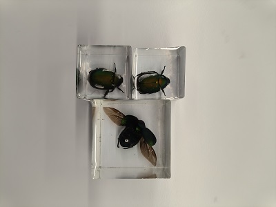 第一周的课程聚焦于现代AB胶封存技术。同学们细心调配胶水比例,耐心去除气泡,将处理后的甲虫精心封存于透明树脂之中。这一工艺不仅完好保留了甲虫独特的金属光泽,更将其转化为一件件兼具观赏与实用价值的“琥珀”艺术品。