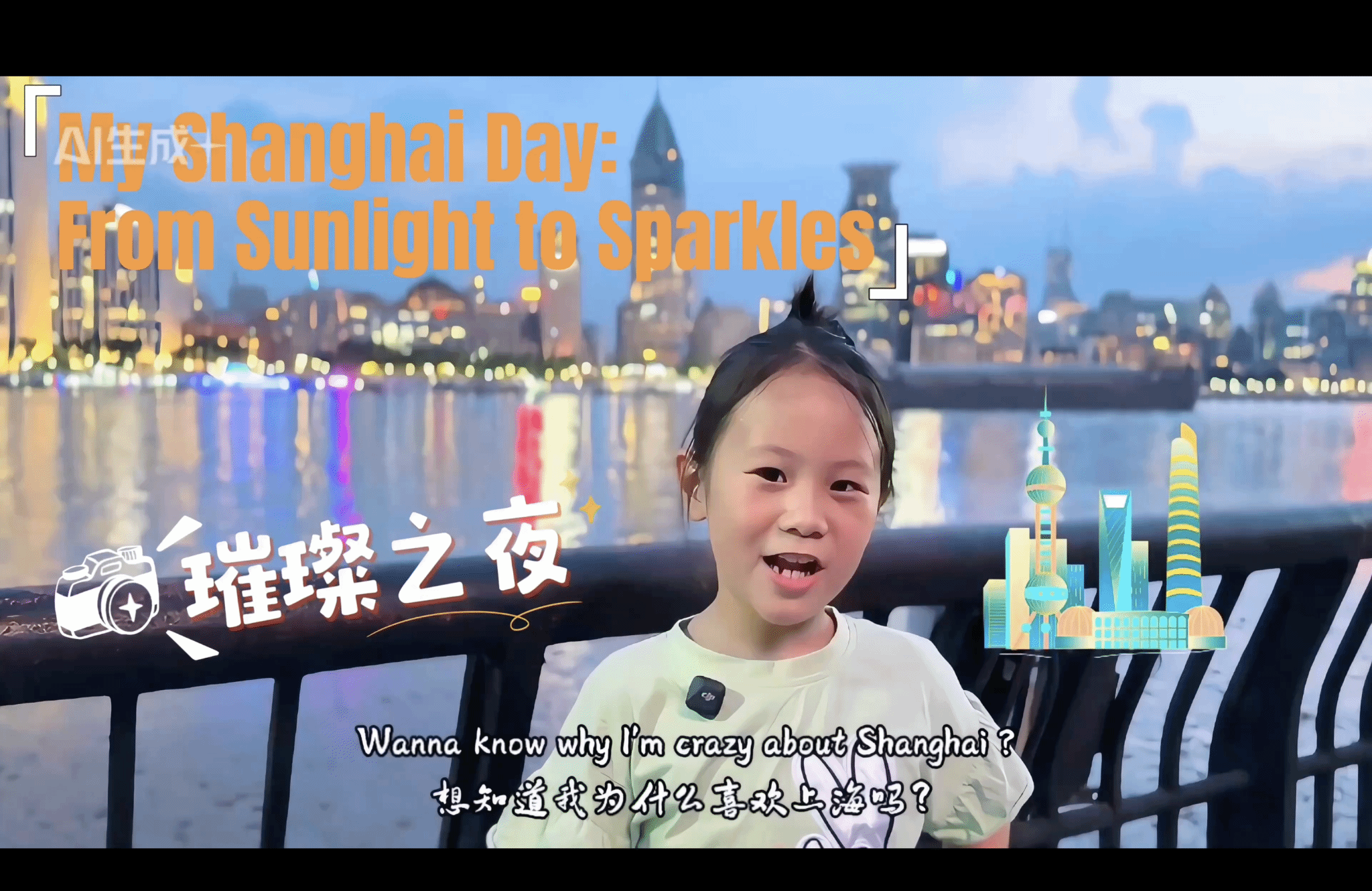 “我的视频拍的是上海从白天到晚上的样子!下午能看到横跨江面的杨浦大桥,红色的桥身超醒目;还有黄昏的时候,我从南京路走到外滩,看到了超壮观的陆家嘴;最后呢,还有街头歌手叔叔超好听的歌声!这个创意是爸爸提的,他说跟着‘白天到夜晚”的时间线拍会很有意思,我觉得上海的夜灯就像小星星睡醒了一样,特别漂亮,就想把这些美好都拍给大家看。拍视频的时候我学会了好多新技能!比如用领夹麦克风说话,声音会清清楚楚的;还跟着爸爸学用无人机拍大桥和船,超酷的!后期配音的时候,我还加了些自己觉得好玩的话呢。我觉得分享自己眼里的上海超重要,因为上海的夜晚像童话仙境,白天又满满都是活力,大家看了肯定会喜欢,也会想来看看这些闪亮的地方呀!”