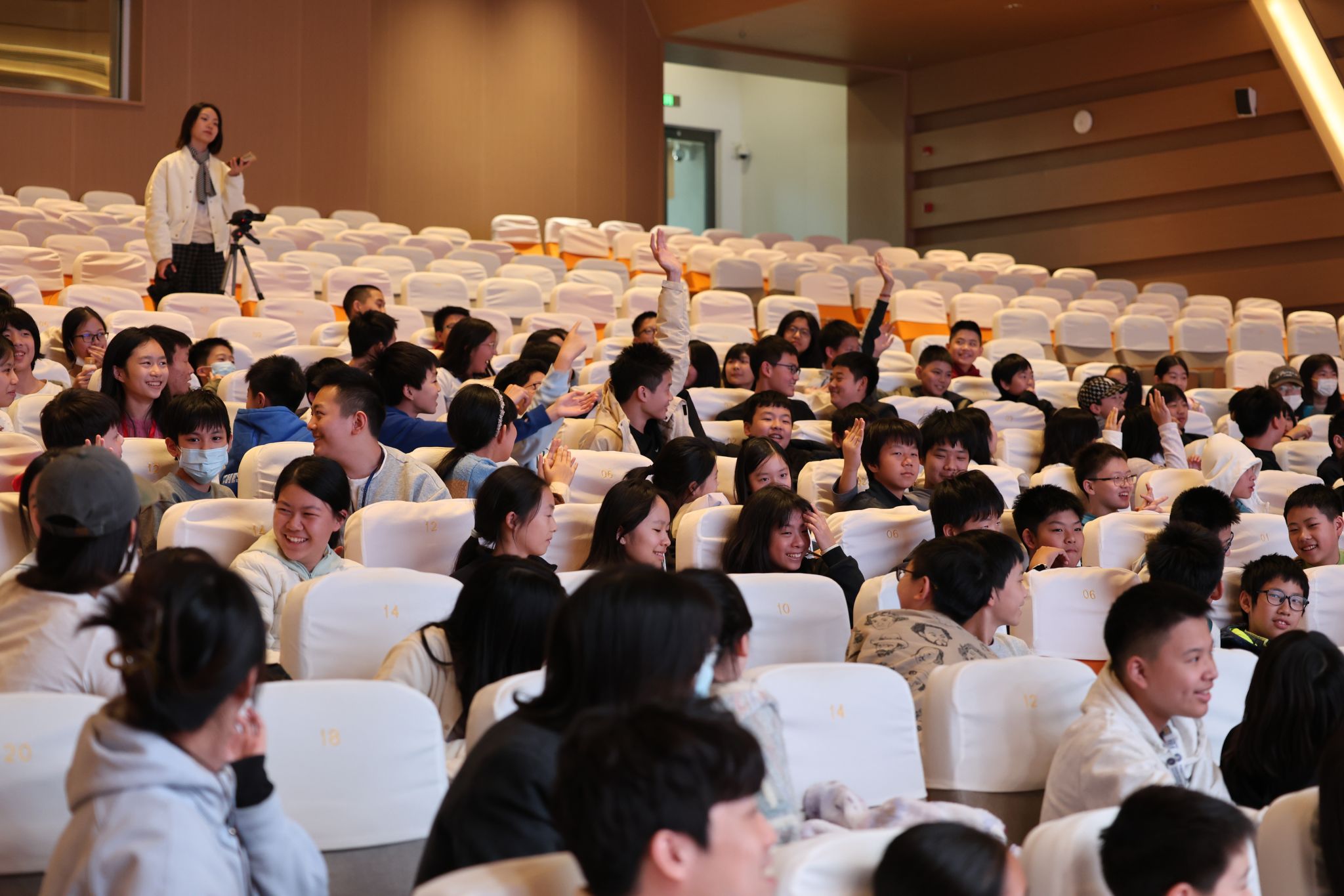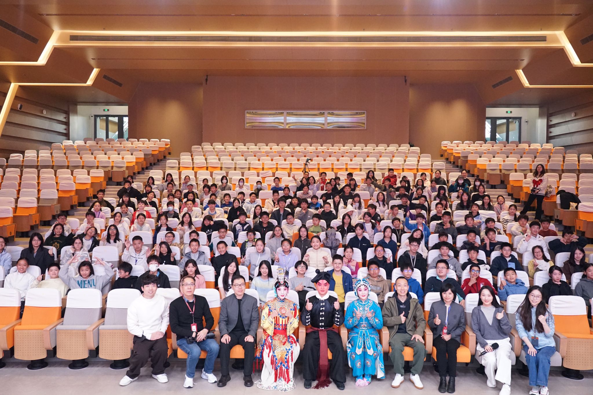 这短短几分钟的体验,让同学们从“观众”变成了“参与者”,同学们以“美猴王”的活泼姿势与“虞姬”的婉约手势,向台下的朋友们打招呼,回馈他们的更是热烈的掌声和真诚的喝彩。