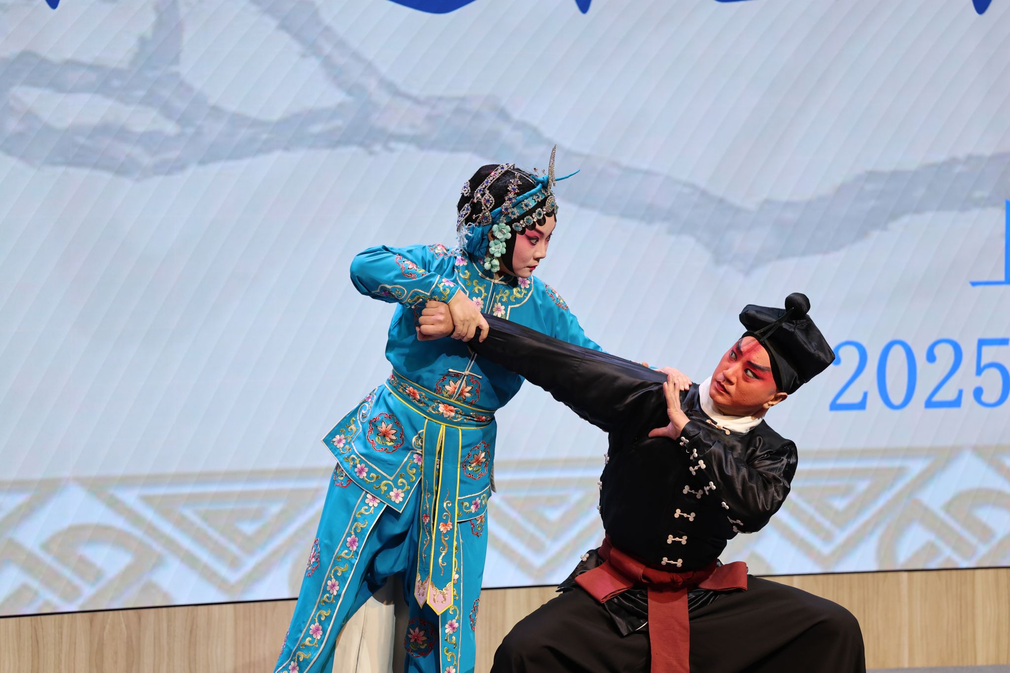 当观众还沉浸在之前的氛围中时,经典武戏《武松打店》瞬间抓住了所有人的注意力。京剧院陈麟老师与魏娟老师搭配默契,以高难度短打动作将现场气氛推向高潮,武松的刚烈与孙二娘的泼辣跃然台上。精彩的演出令同学们喝彩连连,先前关于京剧角色与表演方式的术语,都变得生动、鲜活可感起来。