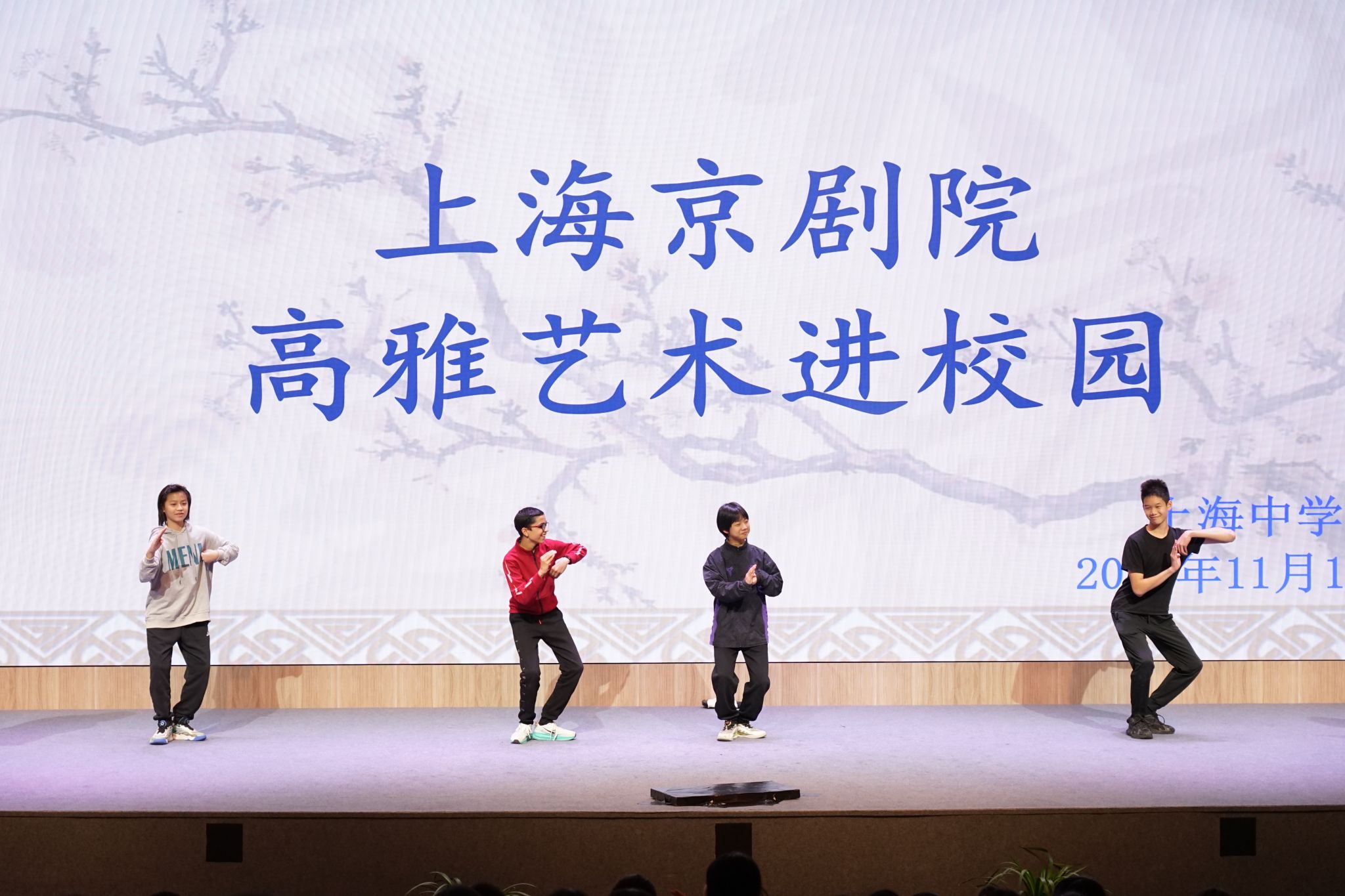 2025年11月18日下午,上海中学国际部七年级中文母语、非母语班的同学们,在西楼大礼堂欣赏了由上海京剧院带来的“京剧进校园”精彩展演。本次活动以讲解、展演和体验的丰富形式展开,通过三段折子戏,让师生享受了一场兼具知识性、观赏性、审美性的艺术盛宴,沉浸式地感受中华传统文化京剧艺术的独特魅力。