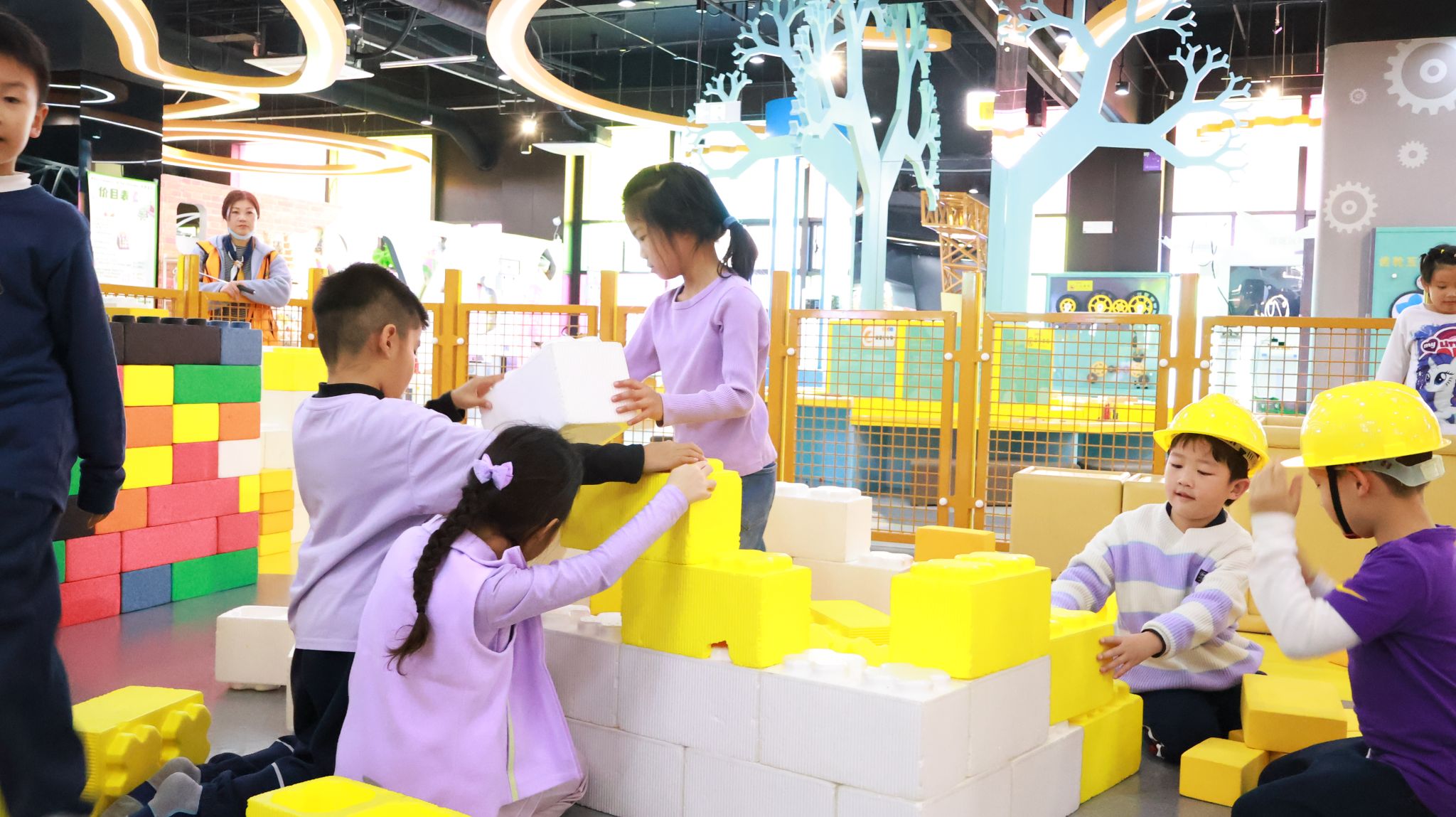 一年级的孩子们走进贝嘉葆STEAM儿童主题体验中心,开启了一场融合科学、技术、工程、艺术与数学的奇妙探索之旅。孩子们穿梭于不同的场馆,在互动装置中感受科学的奇妙,在动手搭建砖块、设计房屋的过程中,用稚嫩的小手触摸知识的温度。在星球主题馆,他们认真思考机械的运转原理,通过亲手操作装置感受工程与技术的神奇;在充满欢乐的淘气堡区域,孩子们尽情释放天性,在奔跑与游戏中拥抱纯真友谊,感受集体活动的温暖。