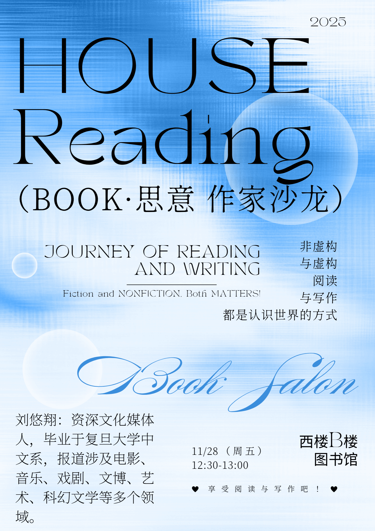 从秋到冬,2025House Reading之“BOOK思意”系列活动以书为媒、以读为桥,在四个多月的时光里,逐步构建起一个动静结合、师生共融的阅读生态。它让文字走出纸页、思想流动起来,更让阅读成为校园生活中可感、可分享、可延续的美好日常。这段旅程虽暂告段落,但书中之光、阅读之意,已在每一个参与者的成长路上,悄然点亮。