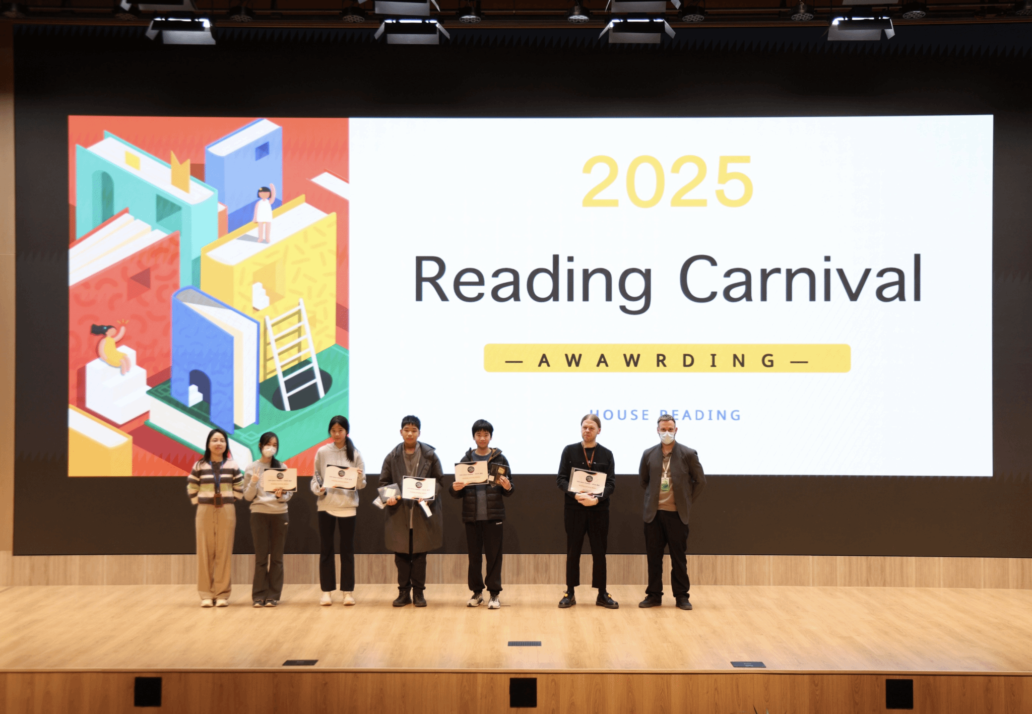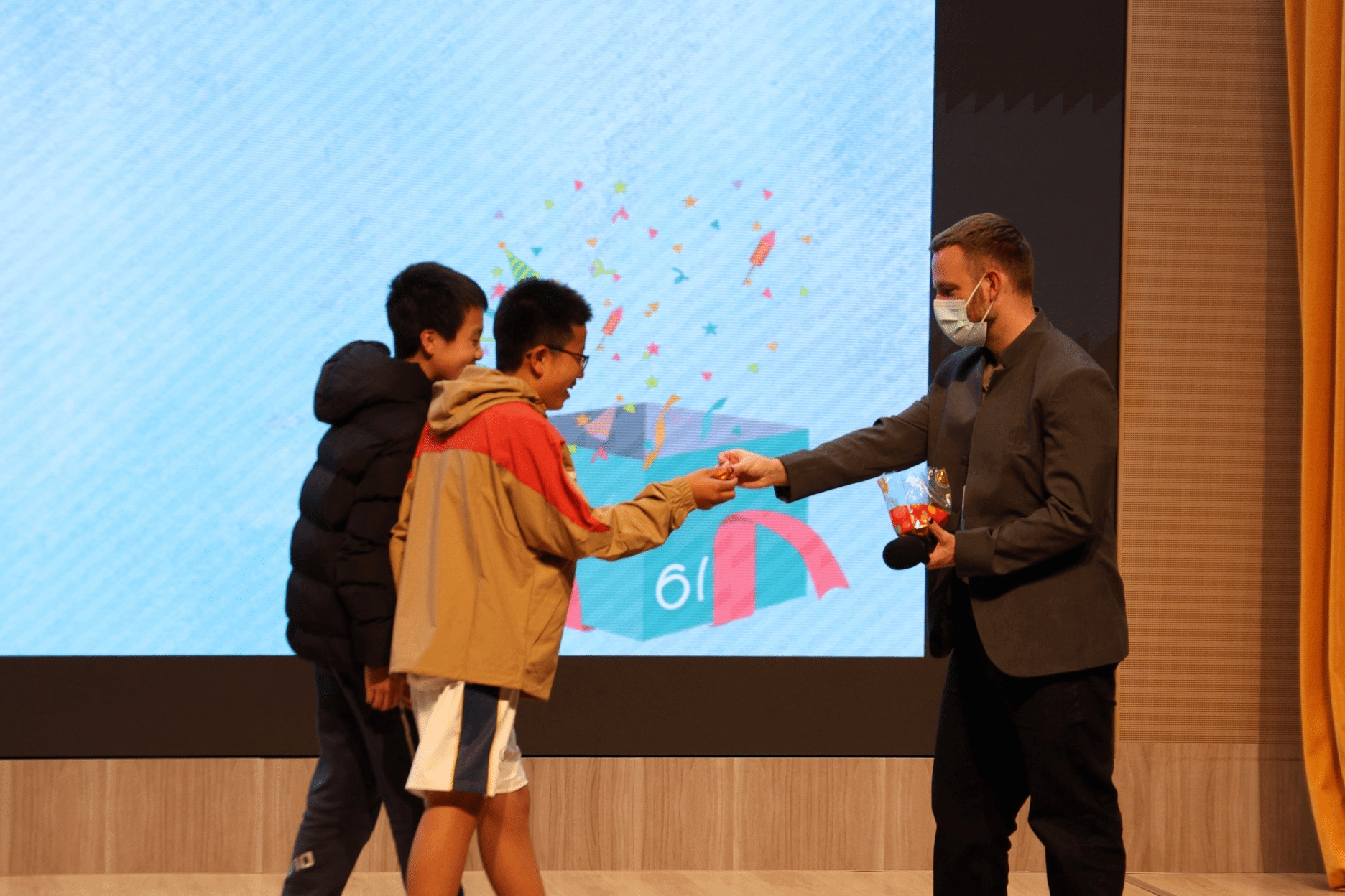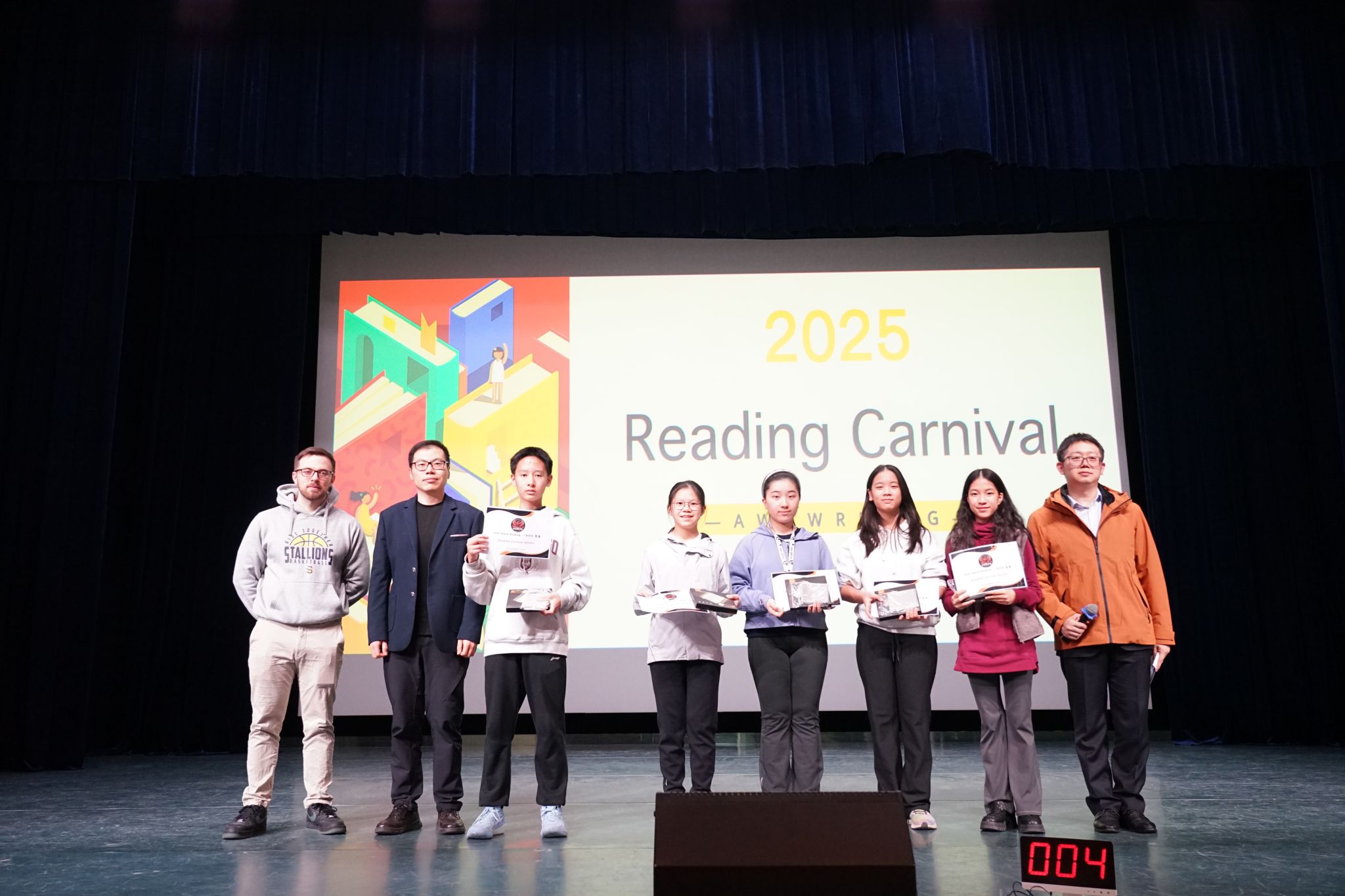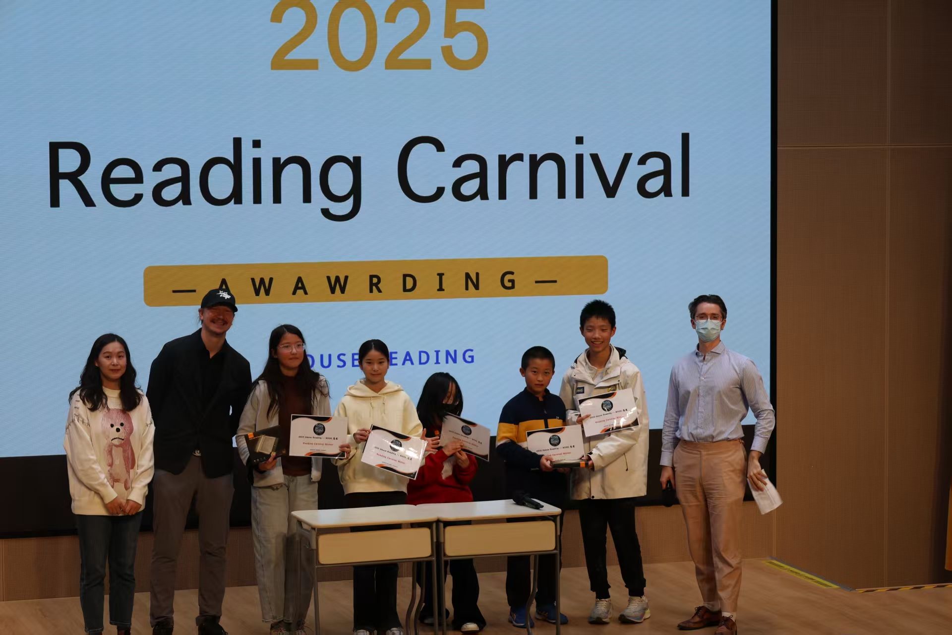 游园会结束后,同学们按House前往不同礼堂参加颁奖环节。开场播放的学期活动集锦视频勾起了大家的回忆。从书单推荐、阅读沙龙、图书馆寻宝到作家讲座,所有美好瞬间在大屏幕上缓缓流动。随后,各班在阅读嘉年华中集章最多的积极参与者上台领奖。现场还穿插了嘉宾与阅读相关的随机问答。颁奖典礼最后,每位学生都收到一把印有House Logo的直尺作为纪念。十二月的阅读嘉年华让阅读不仅停留在书页间,更真正成为一种可分享、可体验、可庆祝的校园文化。