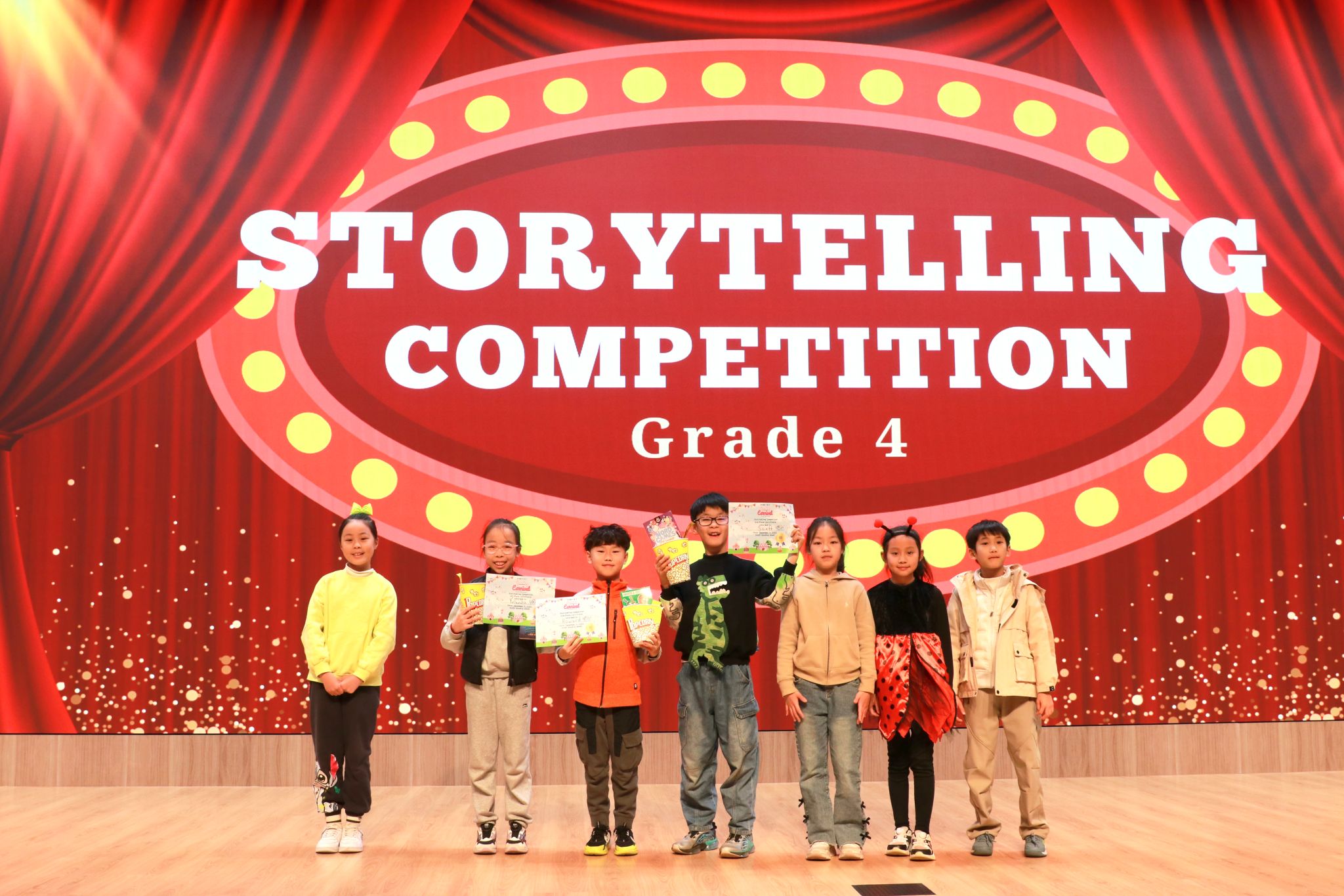 周四下午,各年级举行了“英语阅读月”系列活动之讲故事比赛,参赛者们充分发挥想象力,围绕主题创作出一个个情节生动、情感丰富的原创英文故事。舞台上,他们用流利的英语声情并茂地讲述,辅以恰当的肢体语言,将观众带入奇妙的文学世界。选手们不仅展现出优秀的英语表达能力与叙事技巧,更以故事中的情感与思想感染着台下的每一位观众。