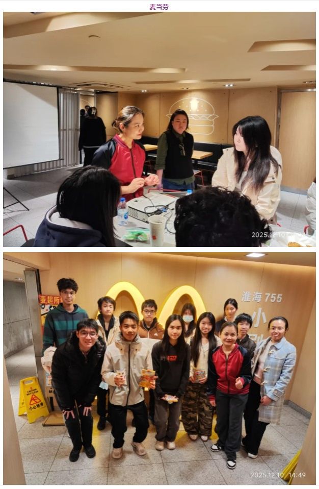 “今天,我与同学们参观了位于淮海路的麦当劳,这也是我第一次亲眼见到这家全球快餐巨头的幕后运作。整个过程让我感到非常震撼。从了解麦当劳的历史,到亲自走进后厨,体验食物从制作到上桌的每一个环节,我对快餐的运作有了全新的认识。我们甚至还亲手制作了咖啡和冰淇淋,亲身参与让这次参观变得更加难忘。这次体验彻底改变了我之前对快餐店的印象,相反,麦当劳的后厨井然有序,干净整洁。我还了解到,背后庞大的数据分析系统如何确保每一道美食的精确呈现,这让我意识到数学和经济学在我们日常生活中的重要性。”——9-6 Cherie