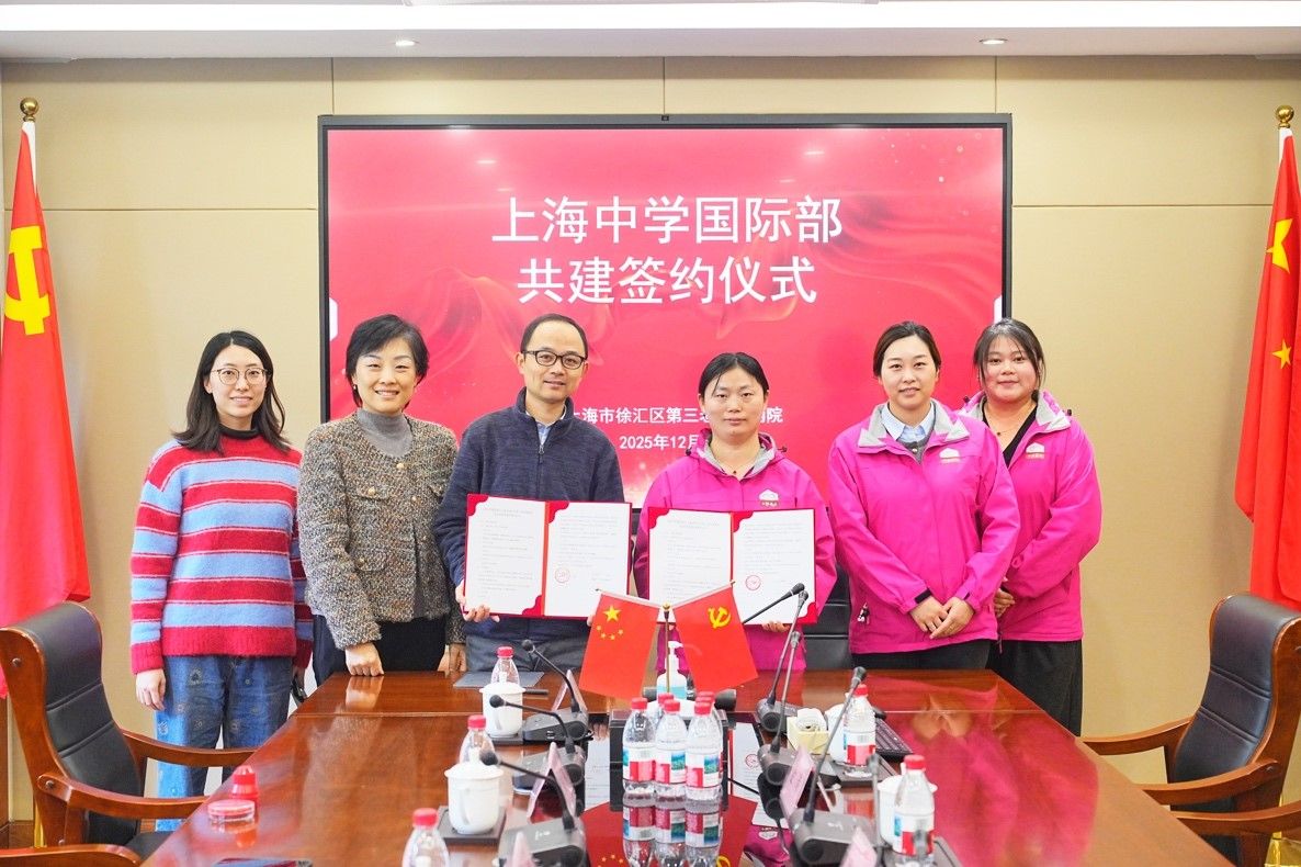 2025 年 12 月 12 日下午,上海中学国际部与上海市徐汇区第三老年福利院于上海市徐汇区第三老年福利院会议室正式签订社会实践基地共建协议书,为双方长期化、体系化开展志愿服务合作筑牢制度根基。上海中学国际部高中段校长马峰、副校长张丽、心理老师沈玉婷,以及徐汇区第三老年福利院张凤云副院长,左彩凤副院长、办公室主任金玮等共同出席本次签约仪式。
