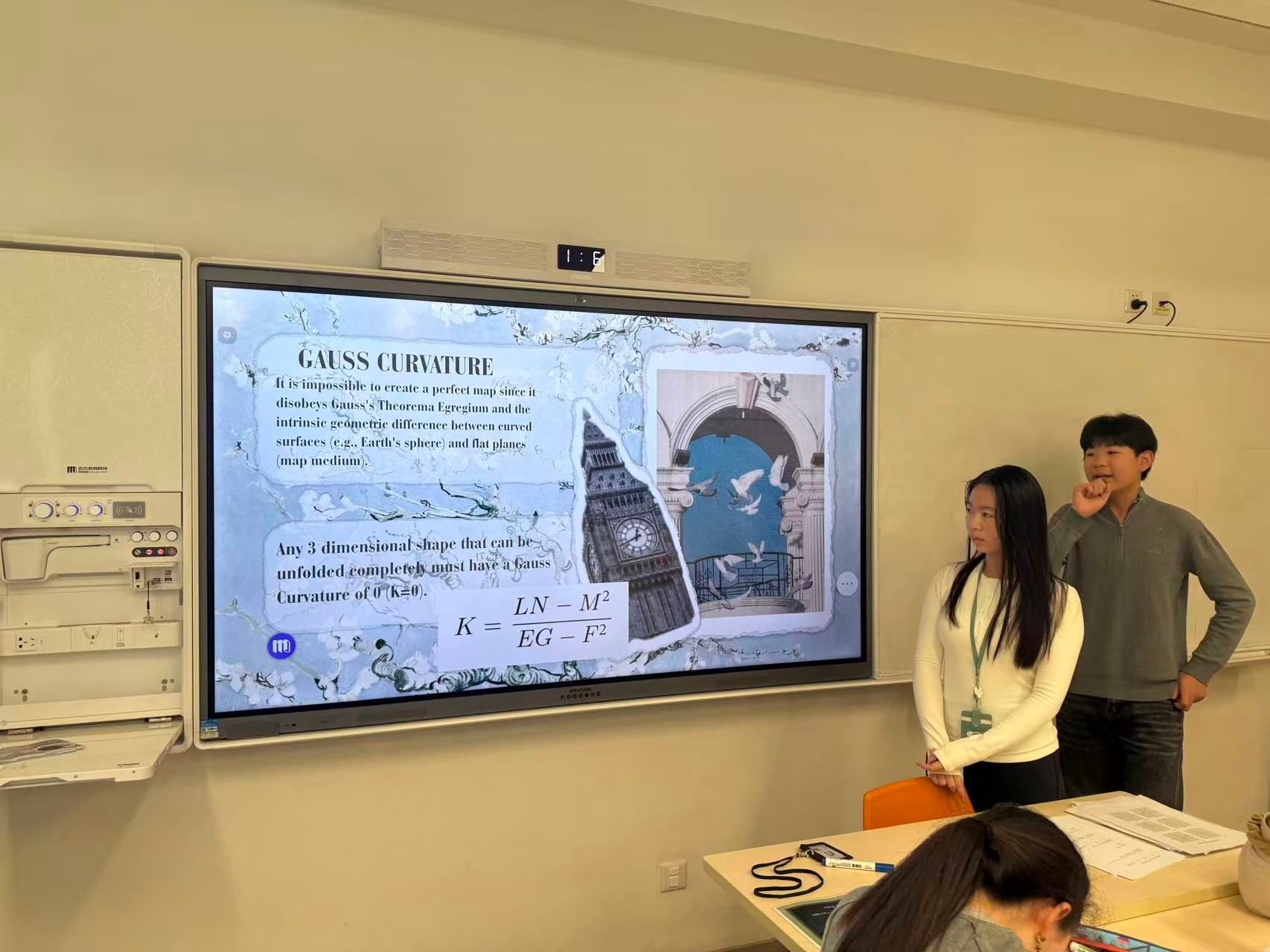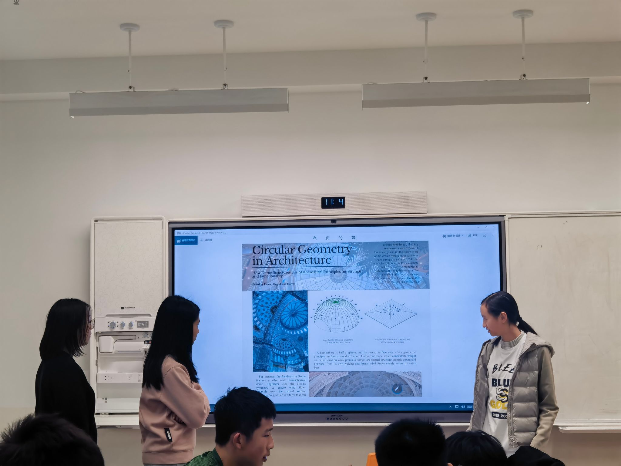 然而,学生们的探索并不仅限于这些课题本身。8年级数学老师们引导学生在理解生活背后数学原理的同时,更鼓励学生思考如何将数学原理迁移至其他方面。不仅如此,随着研究的深入,学生的思维逐渐延伸,并积极探讨数学在更广泛生活场景中的独特作用。这些讨论不仅让学生们看到数学在各个领域的实际应用,也激发了他们对数学更深层次的思考、创新和探索。