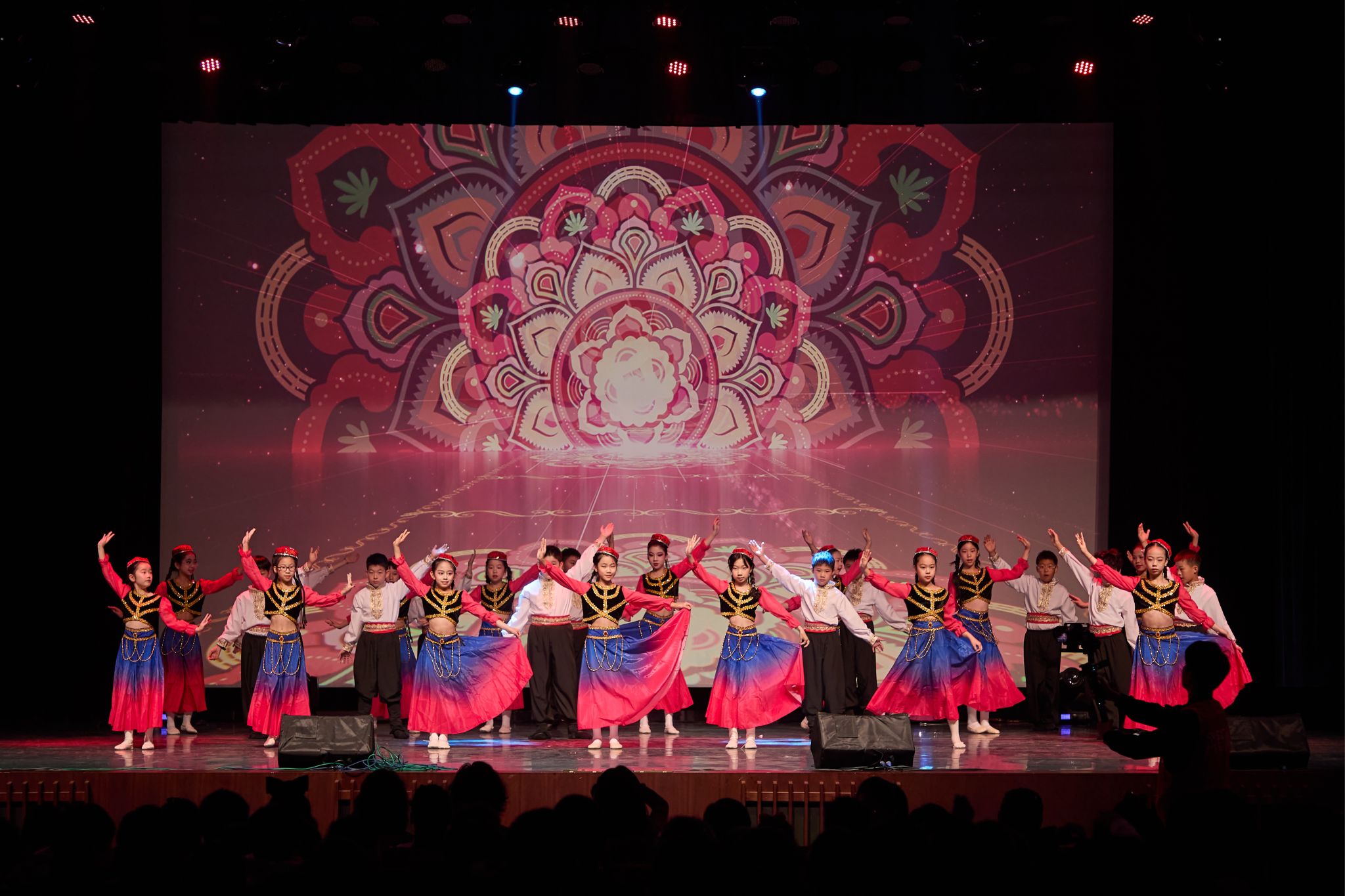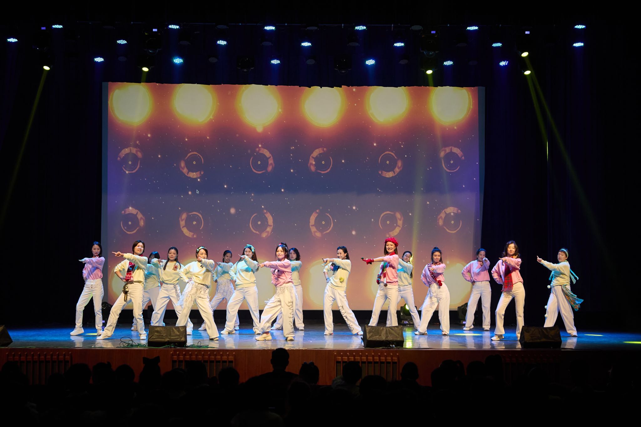 恢弘与温情在此相拥,不舍与期许共赴新程。弦乐团带来的《Palladio》率先登场,旋律悠扬大气,演奏细腻流畅,每一个音符都饱含力量与深情;女子舞团紧随其后,舞姿优美、意境悠远,裙摆轻扬间仿佛将观众带入静谧清新的诗意世界;SPDC 少年团的表演则瞬间点燃舞台,热烈奔放的舞姿洋溢青春活力,将全场氛围推向最高潮。