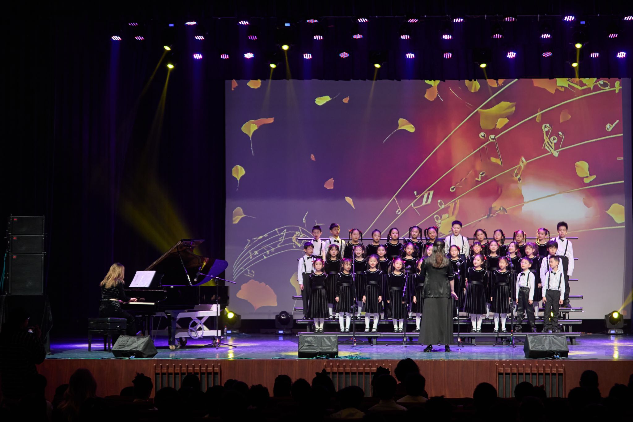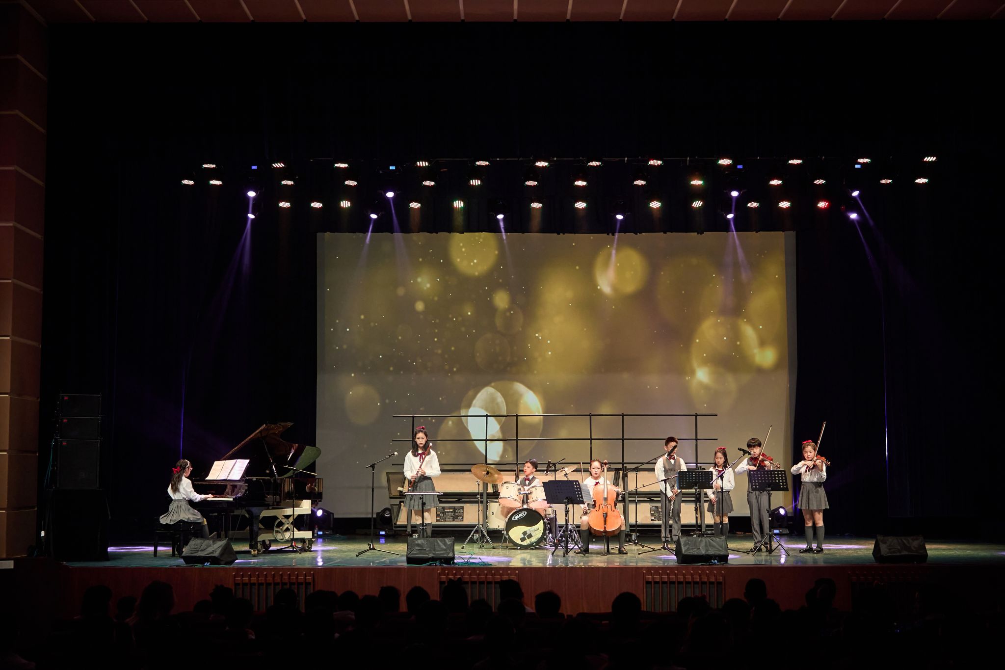舞台氛围再添精彩,音乐剧与钢琴演奏接力绽放。《Stick It to the Man》、《Playing With the Big Boys》两部音乐剧选段里,小演员们凭借生动演技与投入演唱,让跌宕剧情在舞台上徐徐铺展,感染力十足的表现引得台下掌声此起彼伏;乐器演奏环节中,小小音乐家们轮番登场,指尖在琴键上灵动跳跃,钢琴与小提琴默契相合,扎实的演奏功底让古典韵律与现代格调交织共鸣,将现场带入沉浸式的音乐世界。