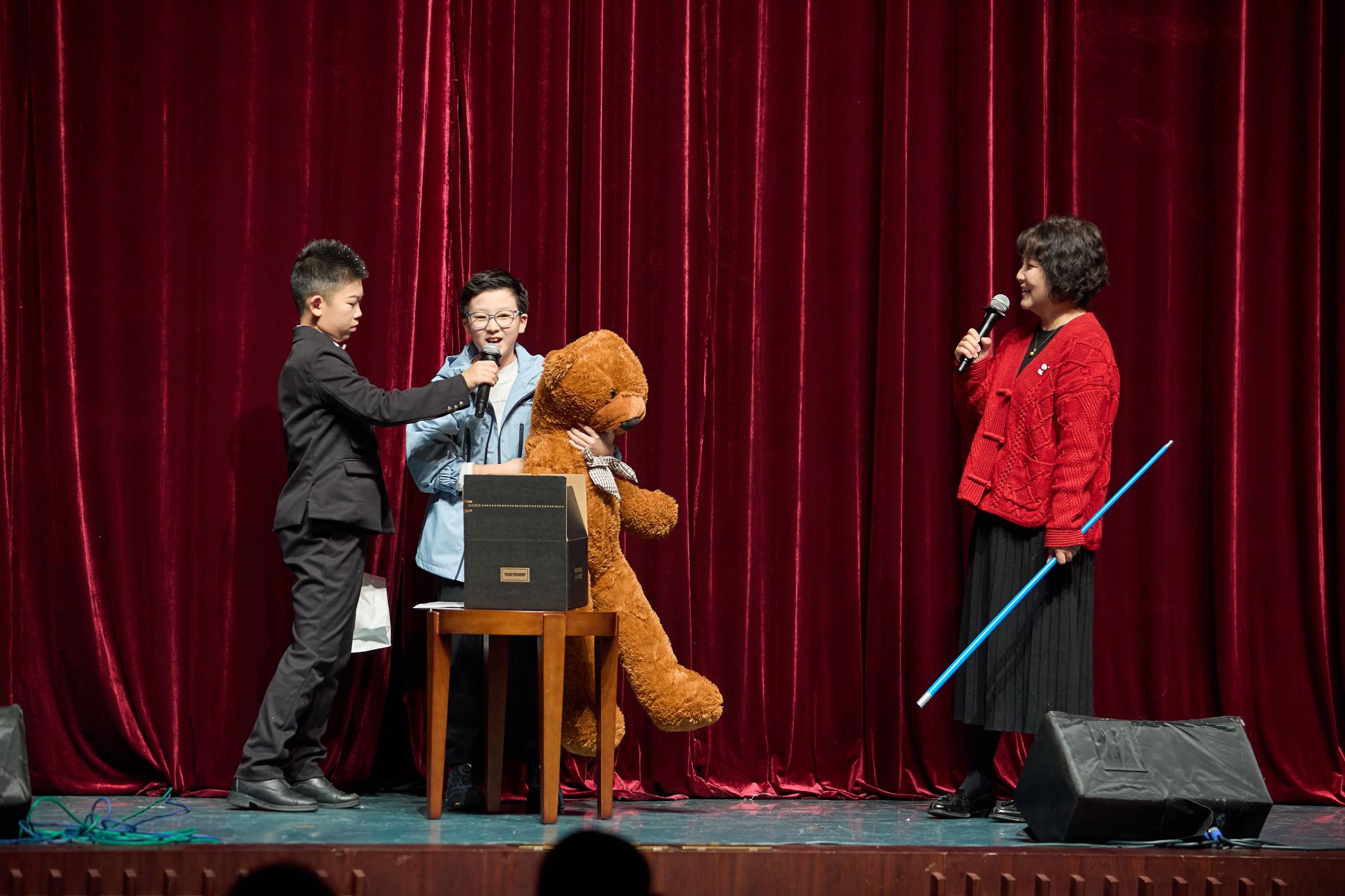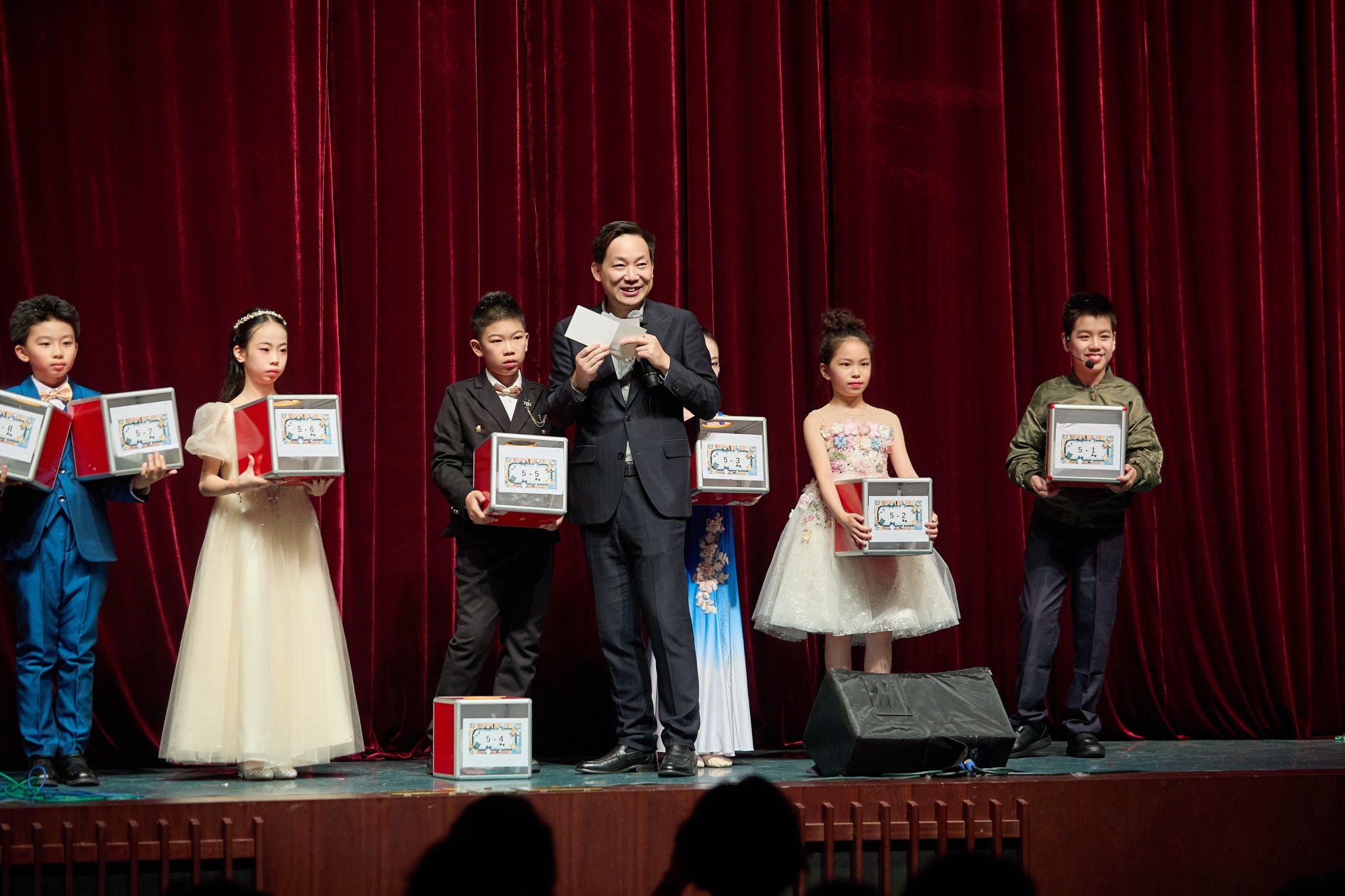节目间隙,惊喜接连空降。小小魔术师带来神秘表演,以巧妙的手法引发全场阵阵惊呼与欢笑;上海中学国际部初小段校长刘炼老师、初小段副校长刘芳老师的现身更添暖意,不仅带来充满悬念的幸运抽奖环节,更向全体师生与家长致以诚挚的新年祝福,温情与欢乐交织,现场氛围更加热烈。