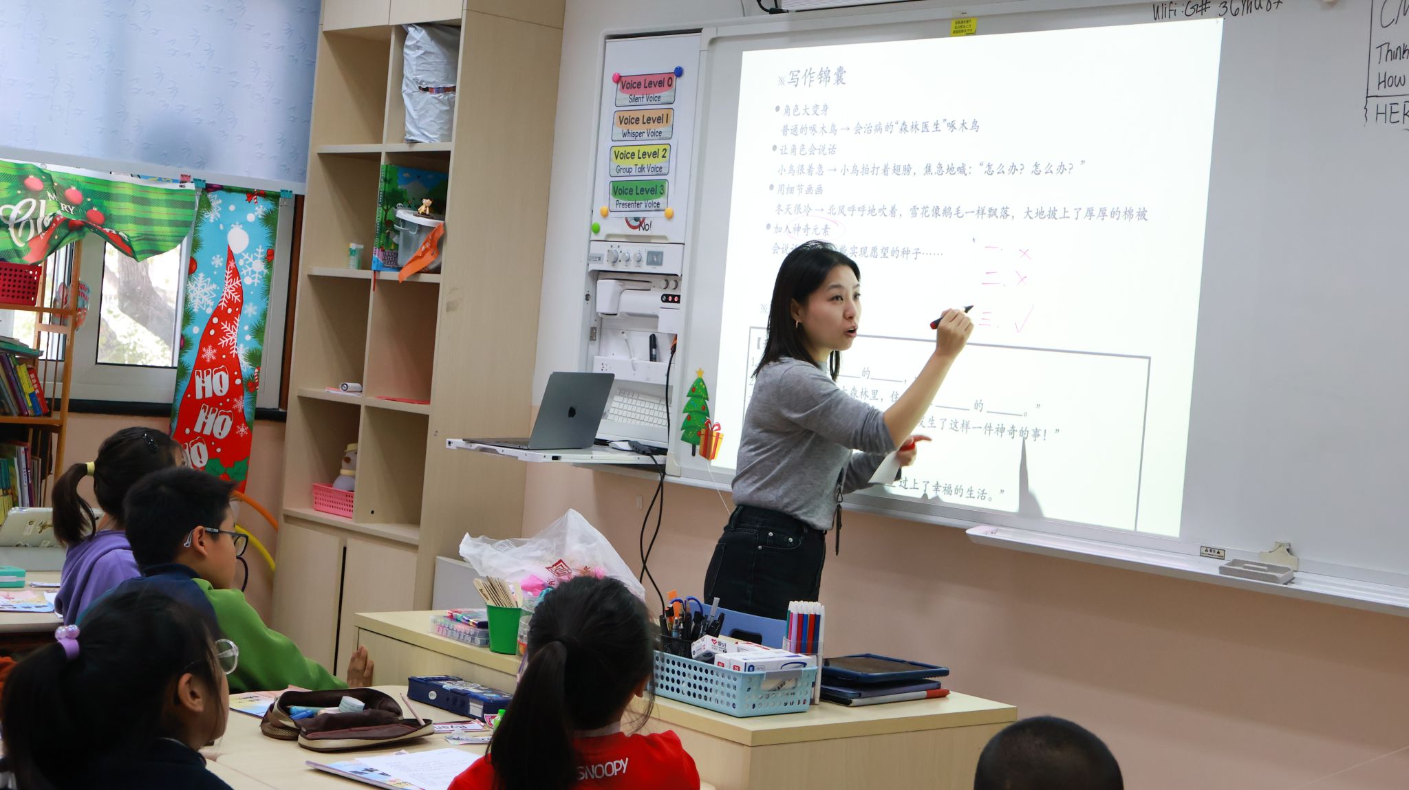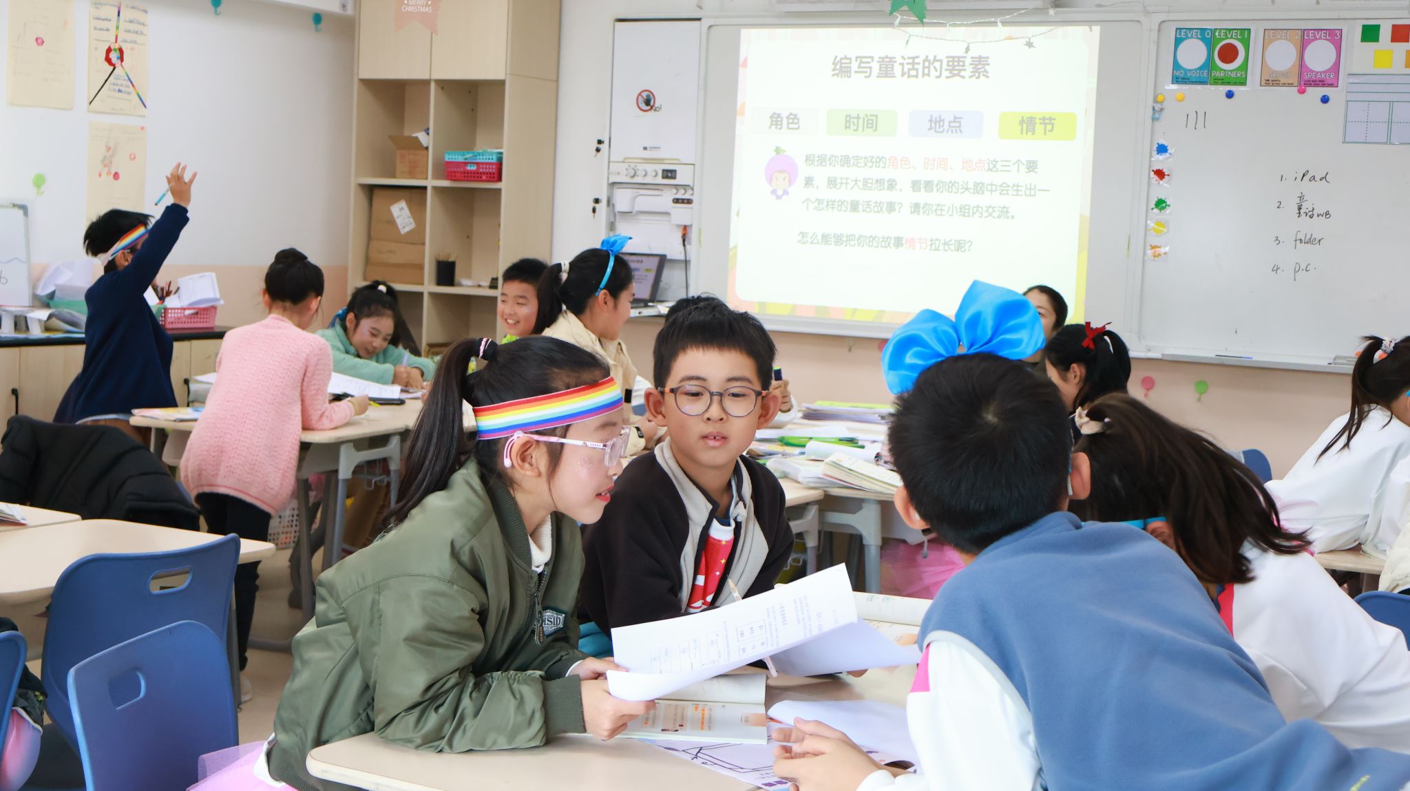 来到童话周的第四天,孩子们正式从“读童话的人”变成了“写童话的人”,展开想象的翅膀,尝试编织属于自己的童话。在写作引导下,孩子们积极思考:我要选择什么角色作为作文的主人公?怎样开展精彩又吸引人的童话情节?课堂上,小组讨论热烈,孩子们你一言我一语地分享想法,有的认真修改情节,有的为结局出谋划策。画笔与文字同时启动,一个个充满想象力的童话画面逐渐成形。这是一次大胆想象、自由表达的尝试,也是一堂充满创造力的中文课。