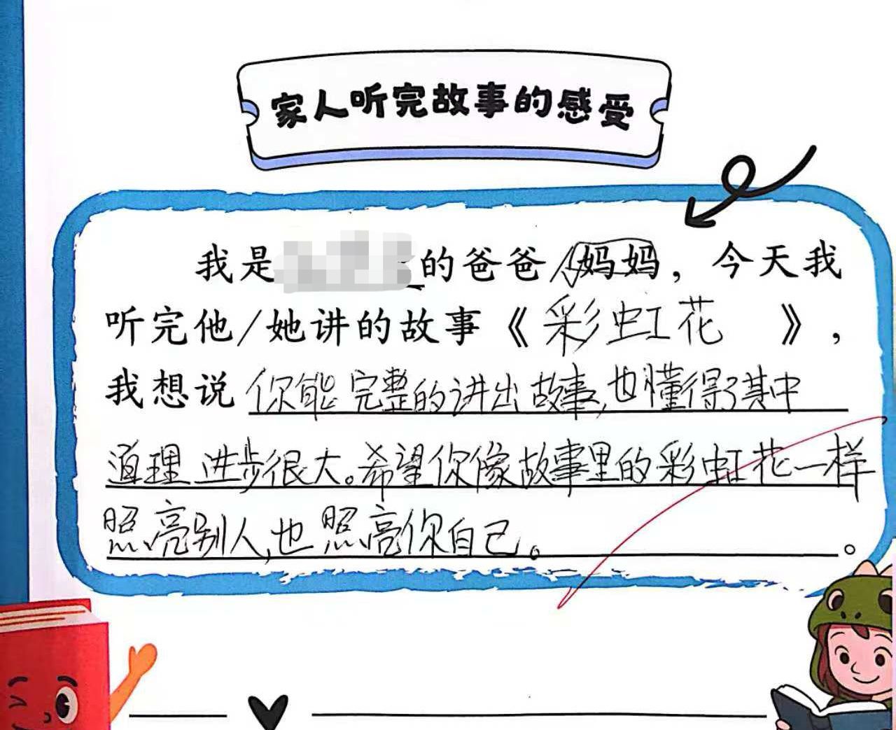 童话在讲述中变得鲜活,语言的魅力也在这一刻被充分展现。回到家中,童话继续流淌——孩子们把故事讲给家人听,家长们用一句句真诚的感受,记录下属于亲子共读的温暖瞬间。