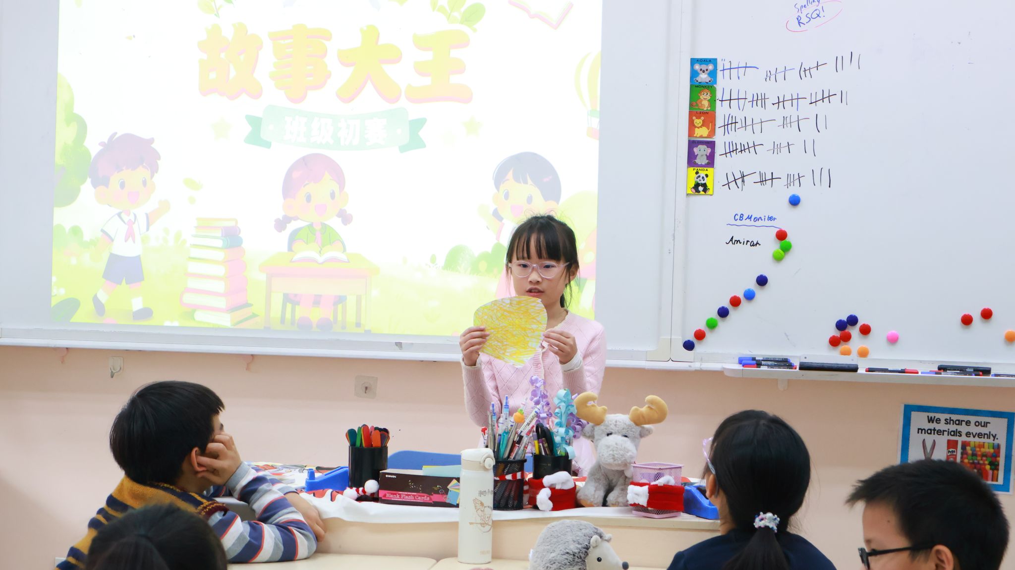 阅读周的最后一天,孩子们一起回顾了一周的精彩活动,分享自己最难忘的瞬间和最大的收获。根据孩子们在阅读、辩论、讲述与倾听中的表现,年级为学生颁发了多项童话主题奖状,如“童话阅读达人”、“金牌演说家”、“最佳聆听之星”、“铁齿铜牙最佳辩手”、“暖心话语魔法师”等,让每一份努力都被看见、被肯定。