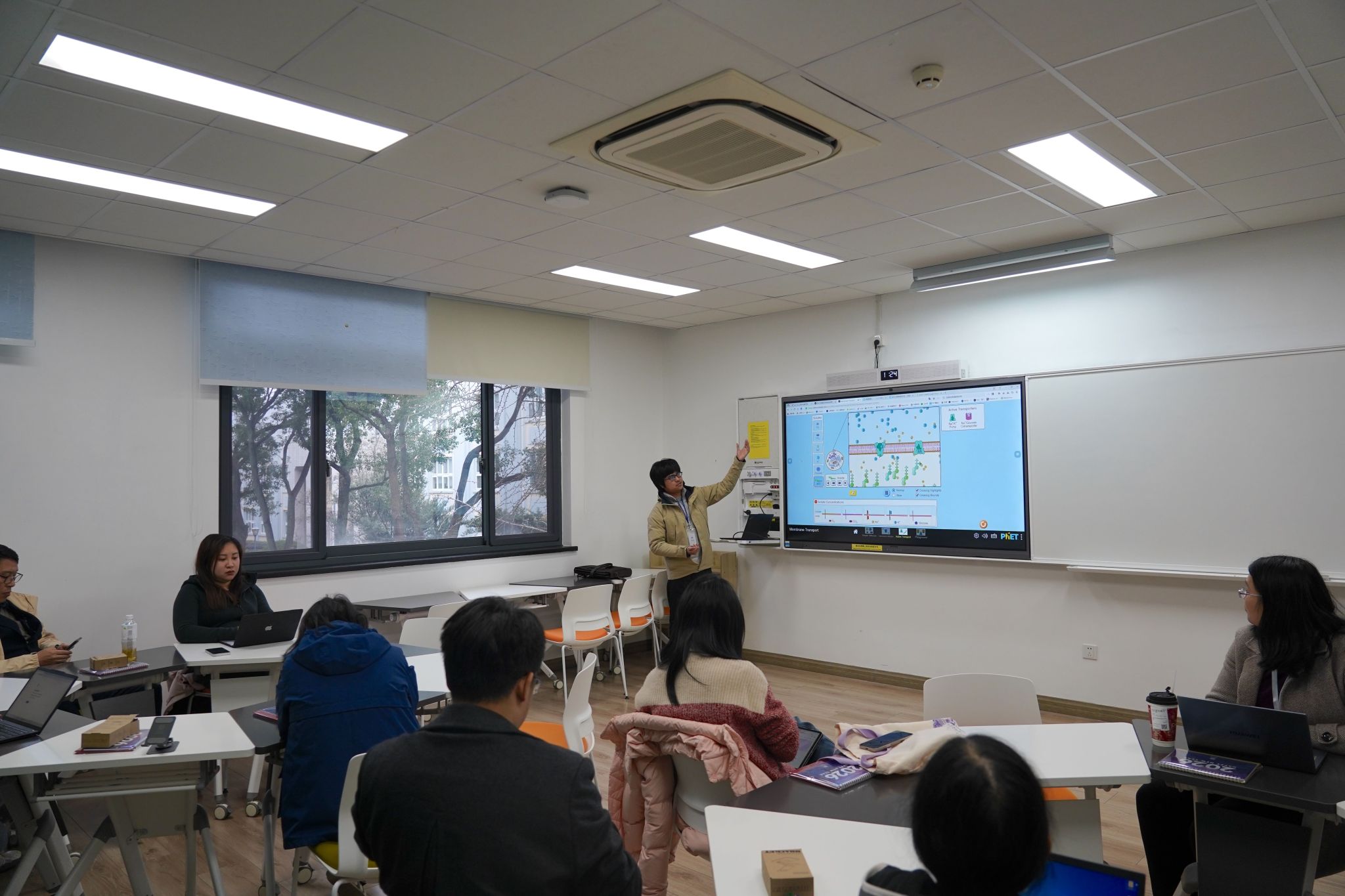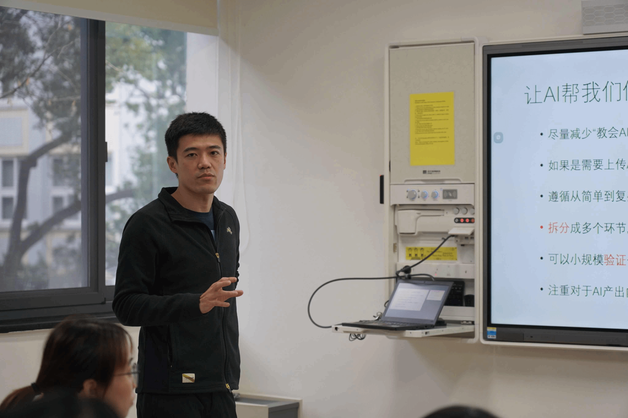 下半场分8个专题工作坊在先棉堂各教室同步展开。工作坊围绕“功能技术”与“场景应用”双主线,提供从AI数据处理、智能体搭建到个性化教学、心理支持等多元培训。工作坊不仅关注工具操作,更深入探讨了学术伦理、人机协同边界等关键议题。