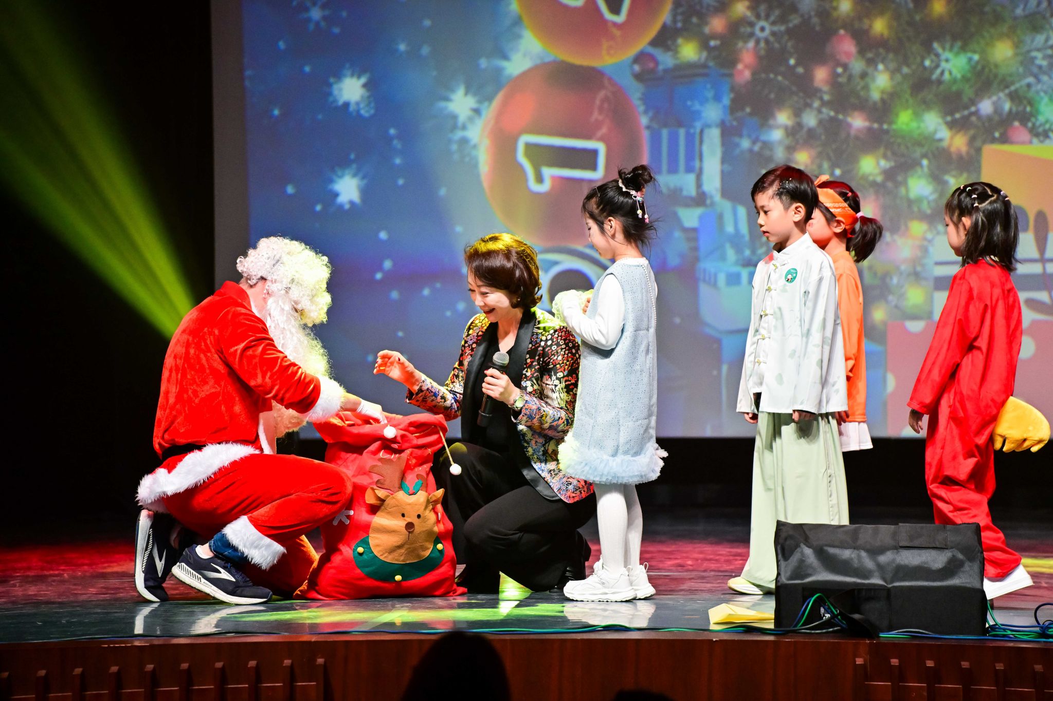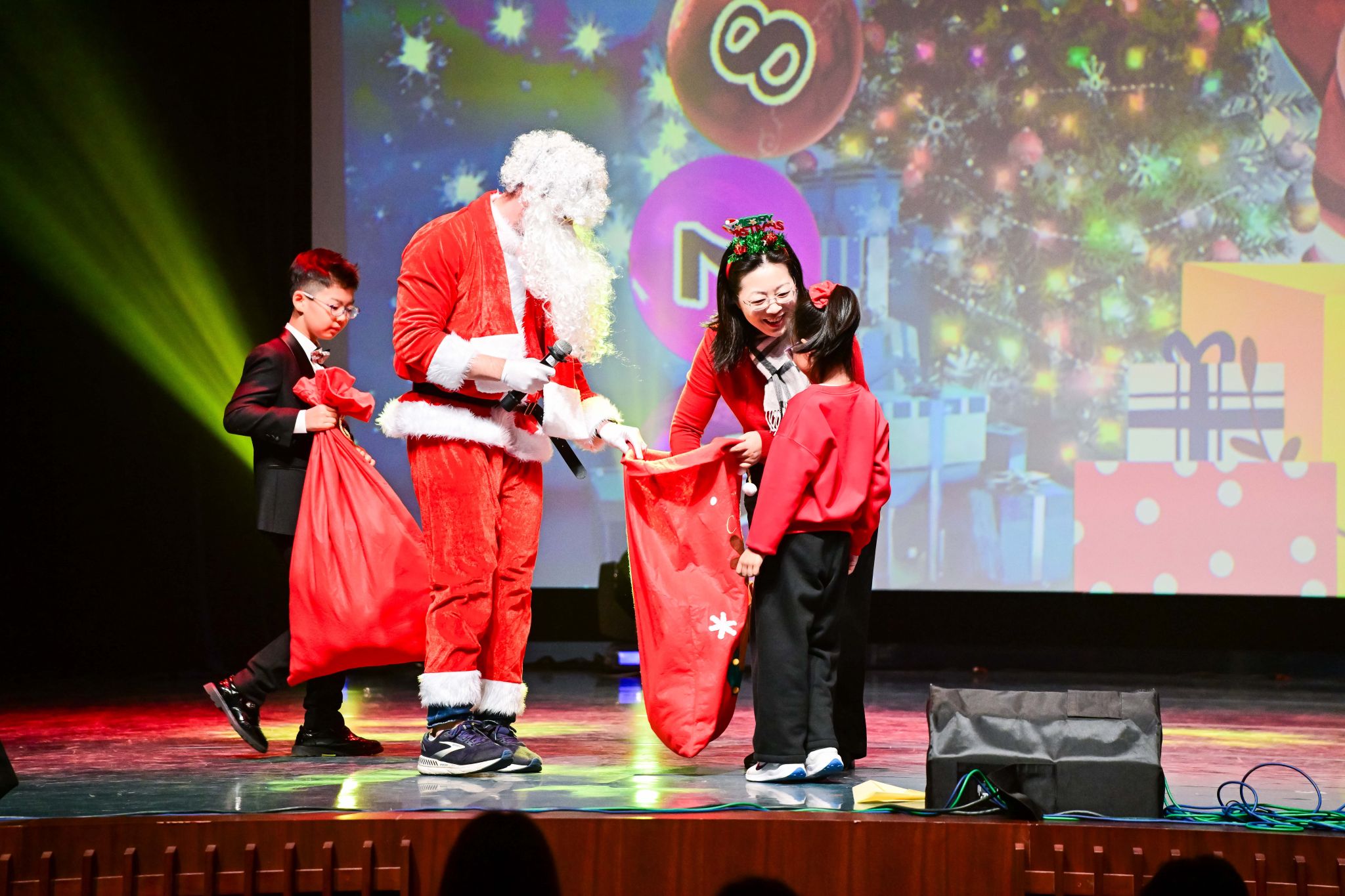 随后,国际部初小段校长刘炼老师、初小段校长助理缪晓玲老师以及浦西校区一至三年级学段主任张怡老师分别抽取了各年级的幸运奖,并为获奖学生送上精心准备的冬日礼物。欢呼与笑声洋溢在整个礼堂,将节日氛围推向高潮。