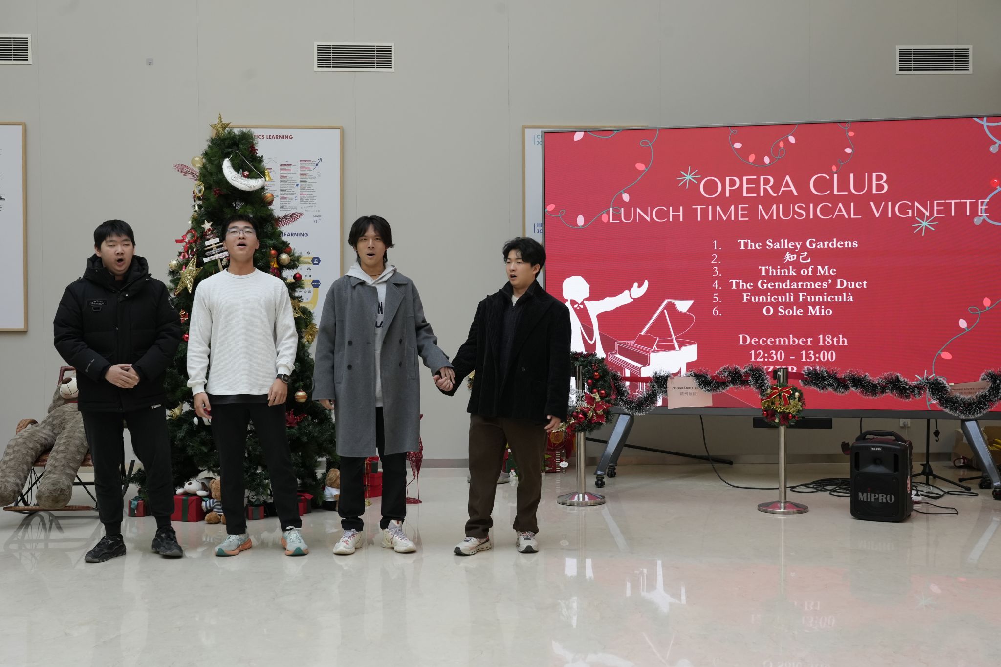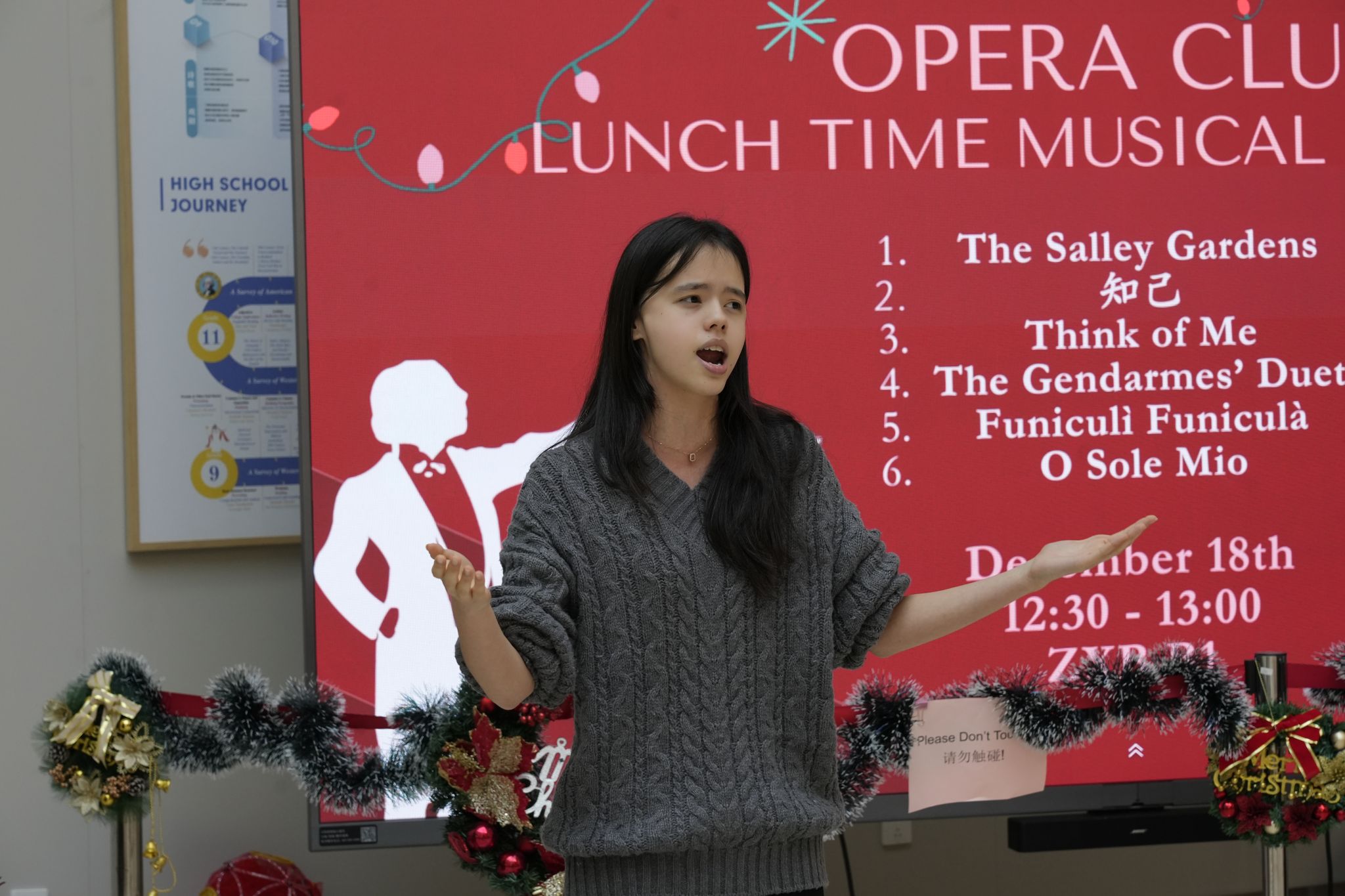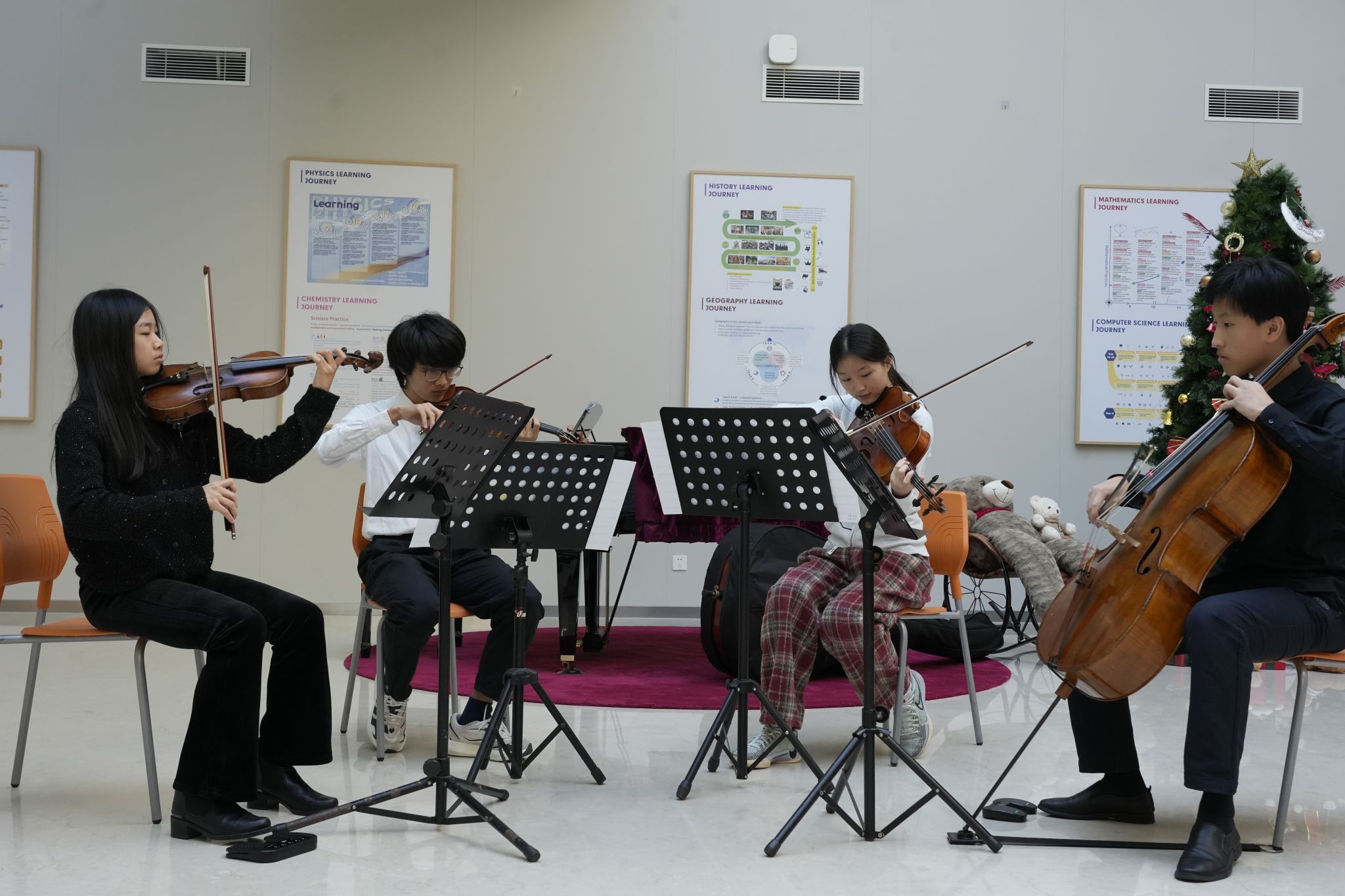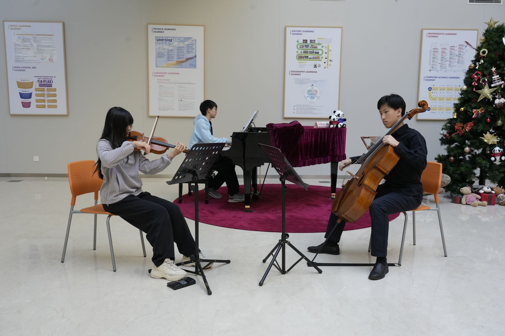 岁末冬深,暖意渐浓。为迎接新年,国际部高中段于12月下旬在中兴楼B1大厅举办了“暖冬迎新”午间音乐沙龙。活动涵盖了弦乐重奏、钢琴独奏和声乐演唱等多种表演形式。作品风格涵盖古典、浪漫和现代爵士乐。