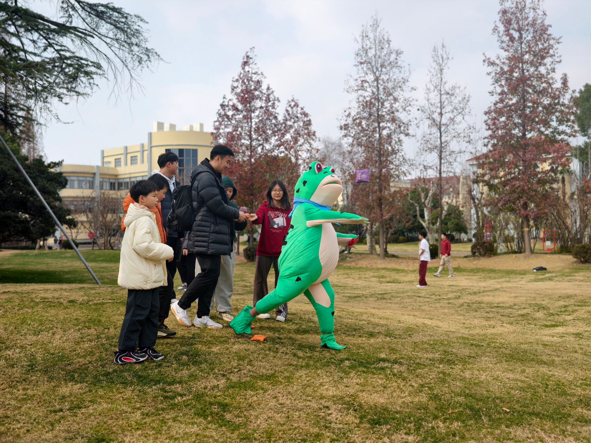 投掷互动兑奖品环节同样备受欢迎。沙包投准架前,同学们纷纷排队尝试,专注瞄准、轻松一投,在紧张与期待中感受游戏带来的乐趣。投中目标后,大家前往兑换区领取新年小奖品,在欢笑中为新一年讨一个好彩头。