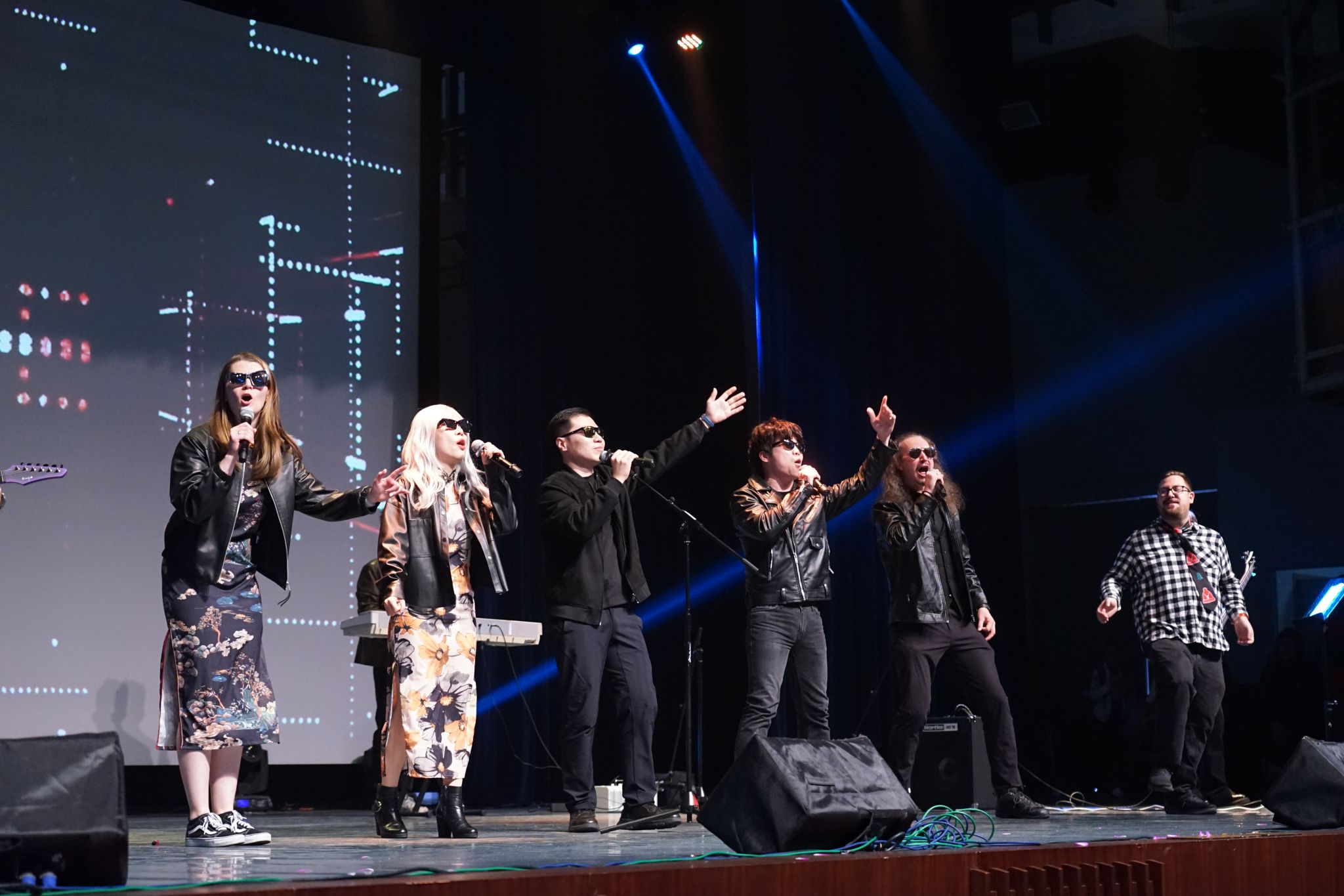 Rock Band Club的Happy Holidays鼓点激昂,电吉他搭配小提琴,师生共同演绎,奏响青春热浪。而教师组成的Friday乐队,虽然最后出场,却因此前“Who Am I”预热活动积累的悬念加上三首风格迥异的曲目掀起了欢呼的最高潮。令人耳目一新的外教领唱粤语版《上海滩》,吉他弹唱改编版Pinball Wizard,以及最后嗨翻全场的We will rock you,酷飒、热血、激昂,为这场艺术盛宴画上圆满句号。
