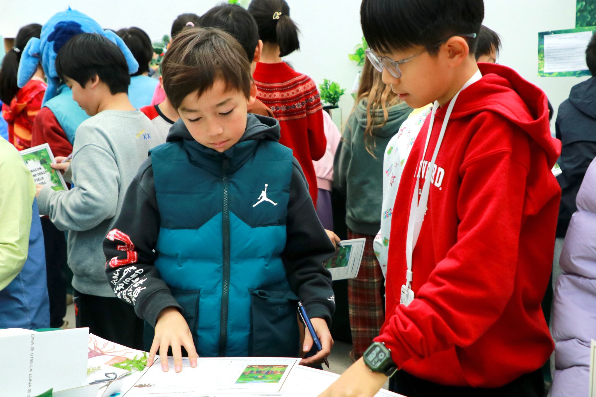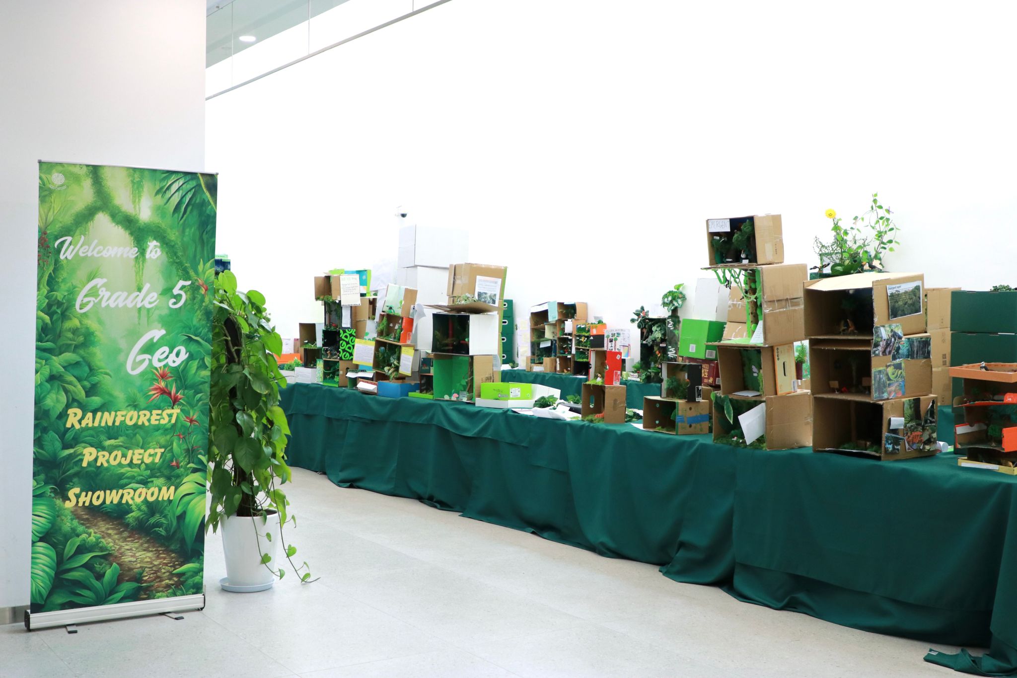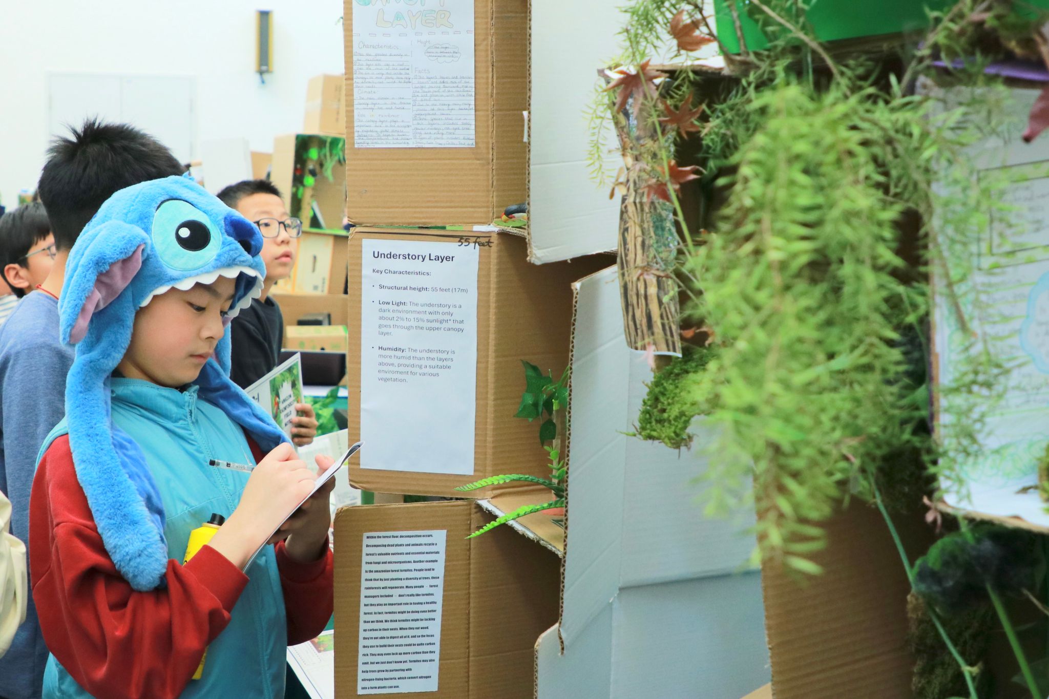 课题项目于12月31日以一场沉浸式“亚马逊雨林成果展”圆满落幕。学生们展示出本组的制作成品,并有序参观同伴的课题项目成果,研读相关内容,学习雨林不同层级的知识。借助结构化的《实地考察记录表》,及时记录新的收获、有趣的发现以及由此引发的思考与疑问。这场展览从而超越单纯的成果展示,成为一个真正的共享学习空间,实现了知识与思维的双重流动。