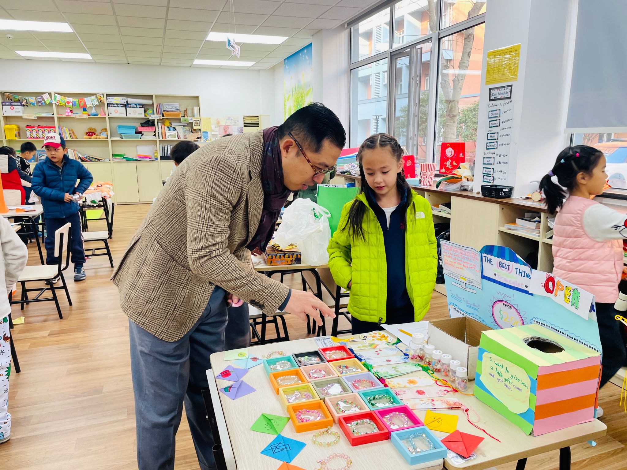 此次迷你集市活动氛围温馨融洽,不仅为学生们提供了展示课堂所学技能的平台,更让他们有机会向其他师生展现自身的创造力、友善热情与兴趣特长。学生们通过精心设计的广告和周密的销售计划,充分体现了对知识的扎实掌握;而活动中展现出的团队协作能力、创造性解决问题的思维、细致的规划意识以及积极主动的沟通风格,更令人印象深刻。2026浦东校区的无限精彩,无疑由此开启!