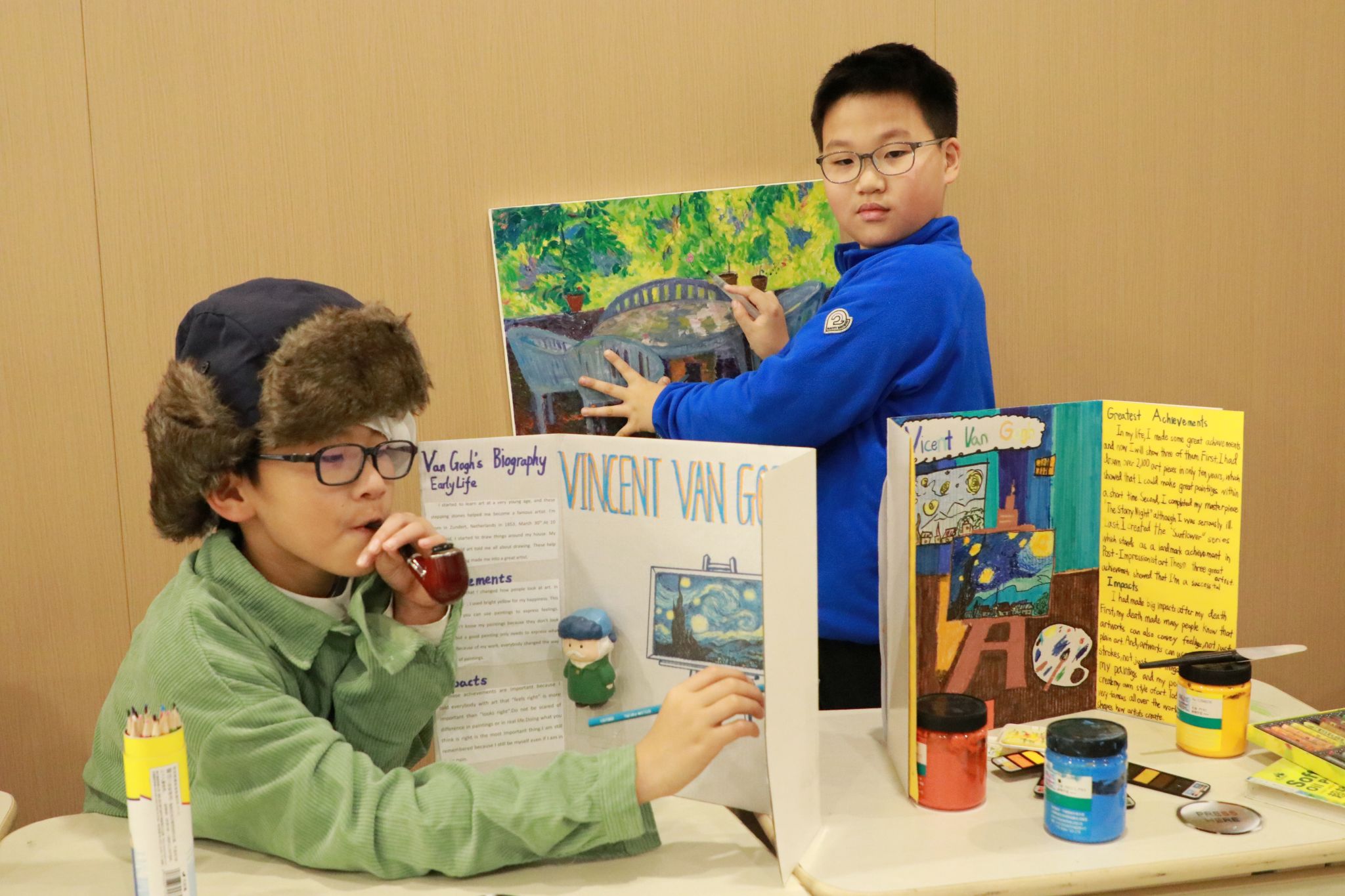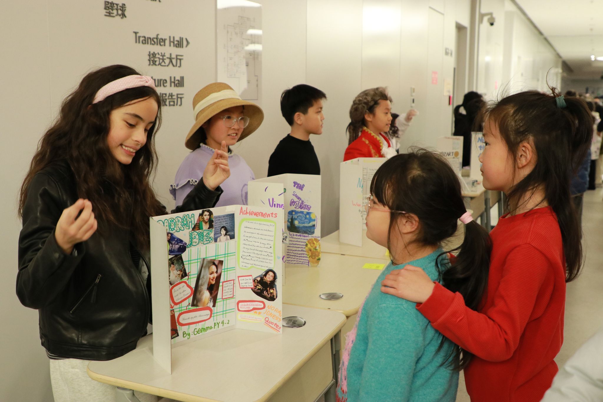 近日,浦西校区四年级学生别出心裁,聚焦表演艺术领域的真实人物展开探究,将西区教学楼打造成一座趣味盎然的“活”蜡像博物馆。 活动当天,他们化身一尊尊栩栩如生的“蜡像”静立展台;当参观者驻足,这些“蜡像”便即刻“复活”,声情并茂地分享人物的早年经历、卓越成就与深远影响。