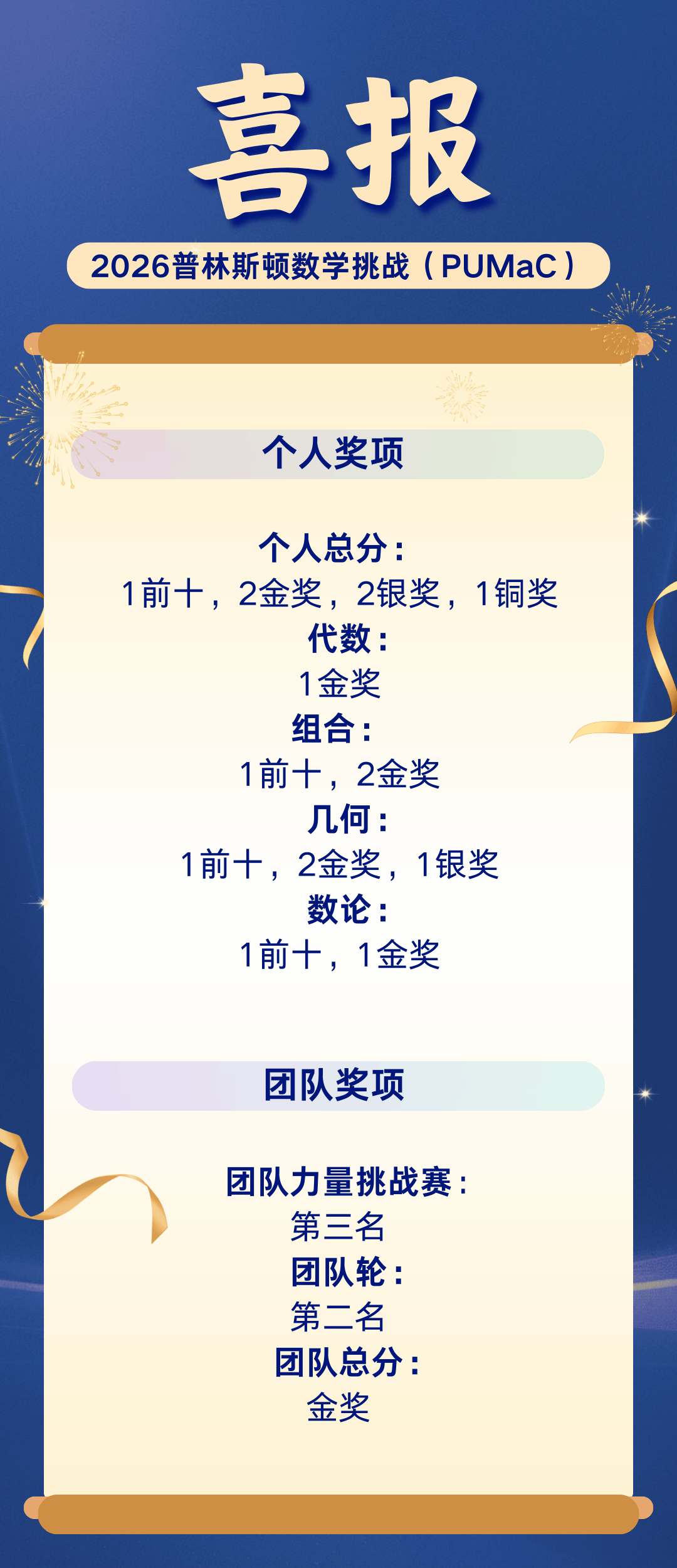 2026普林斯顿数学挑战(PUMaC)获奖喜报
