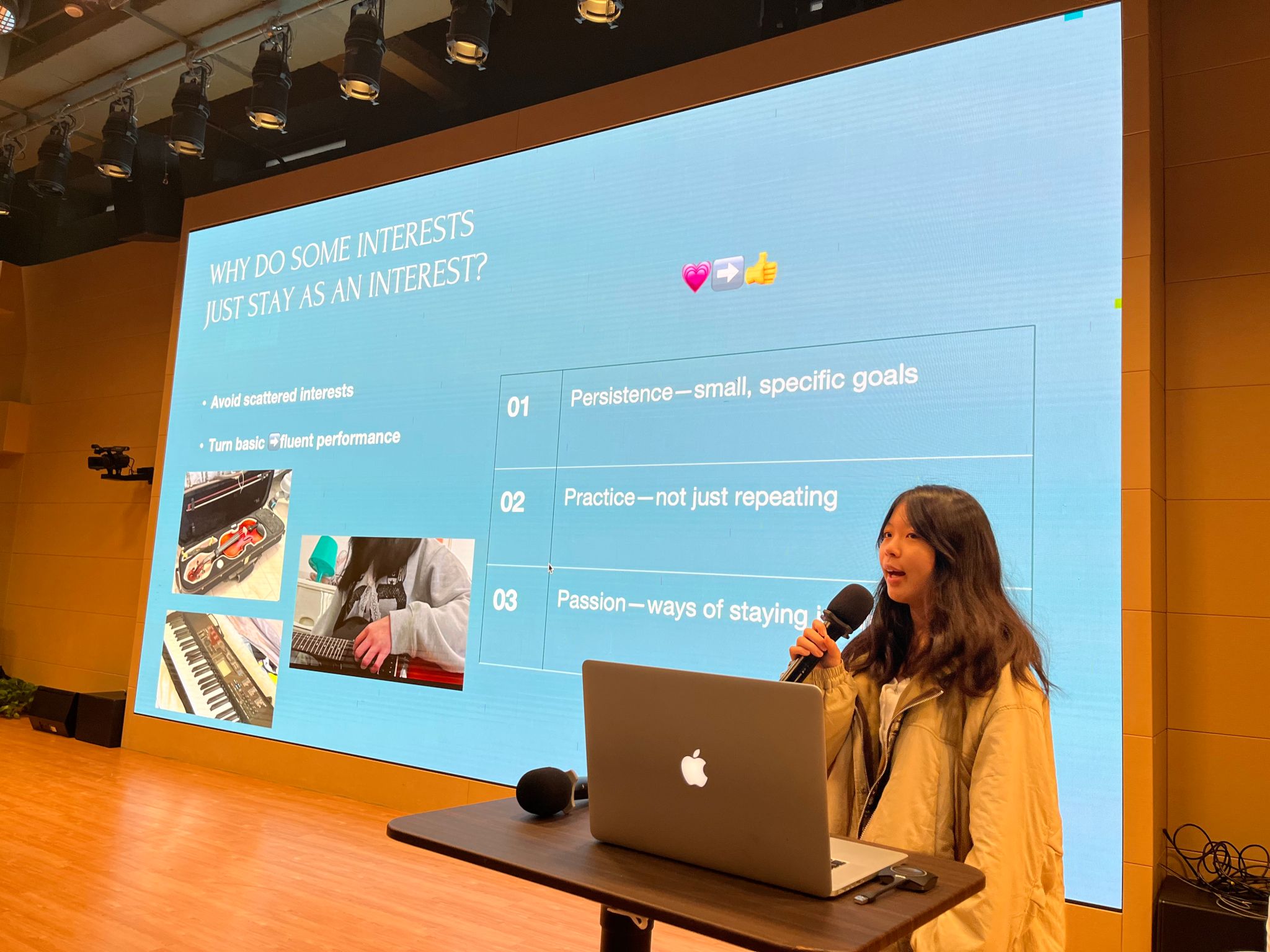 12月9日,九年级开展了一场特别的晨会分享。来自9-7班的Sophie,探讨了一个很多兴趣广泛的同学都会遇到的问题:为什么有些喜欢的事,始终没法变成自己的本领?