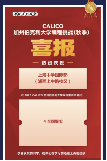 学科竞赛 | 2025年加州伯克利大学编程挑战(秋季)(CALICO)获奖