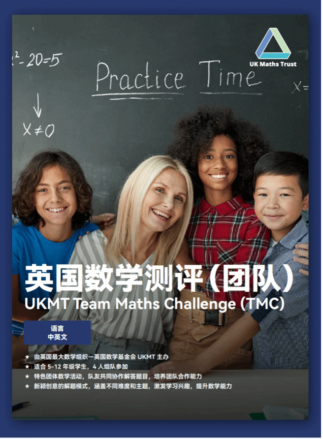 英国数学基金会 (United Kingdom Mathematics Trust, UKMT) 成立于1996 年,其宗旨是提高青少年的数学教育水平,让他们爱上数学,积极运用数学解决问题。英国数学测评(团队)Team Maths Challenge (UKMT-TMC) 是由UKMT主办的团体数学测评活动,来自100多个地区,每年近2万名学生参加区域轮,角逐160个TMC英国总决战名额。