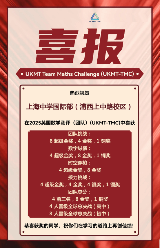 2025年12月进行的“英国数学测评(团队)(TMC)”中,我校学子取得了极为优异的成绩。