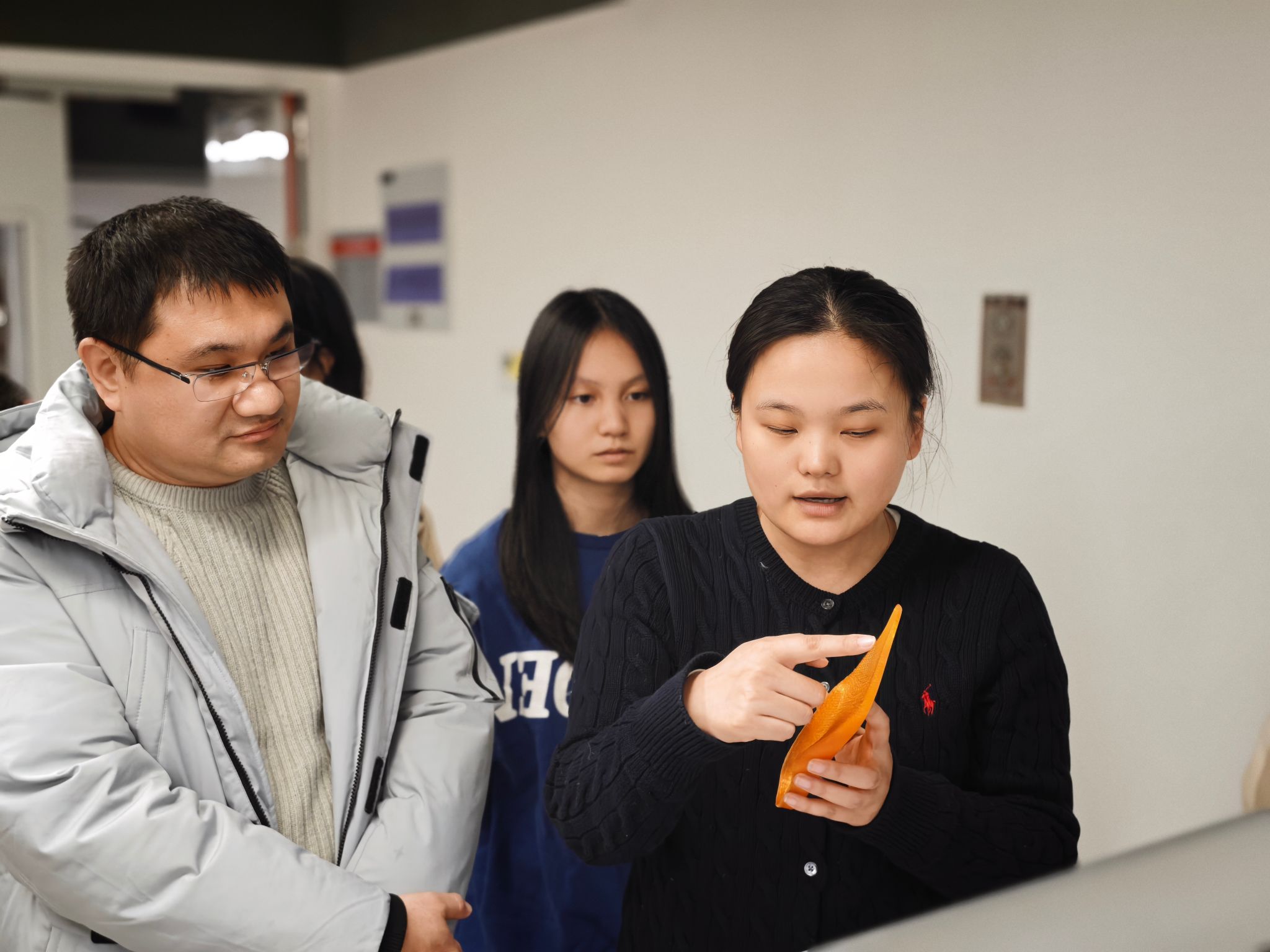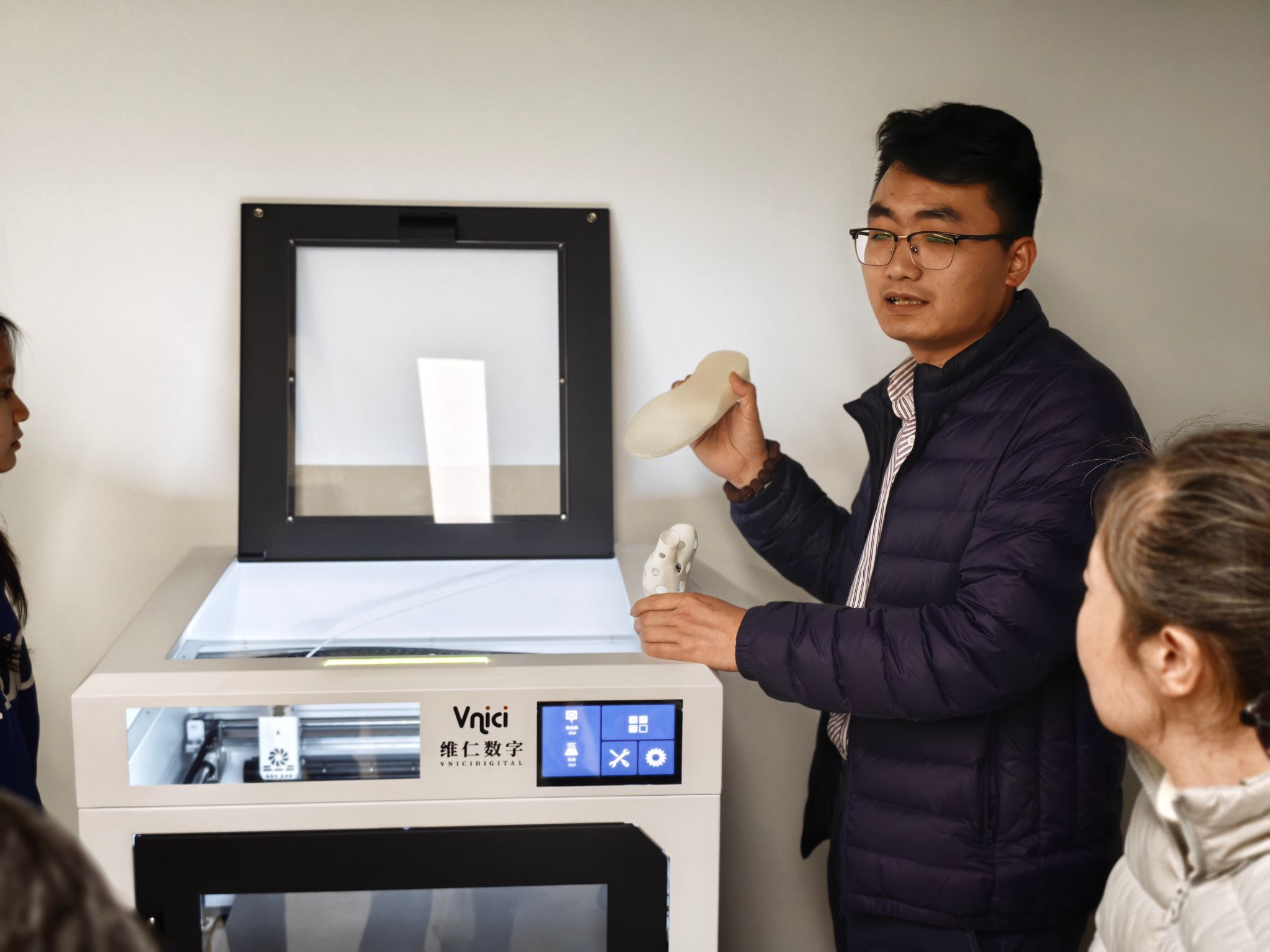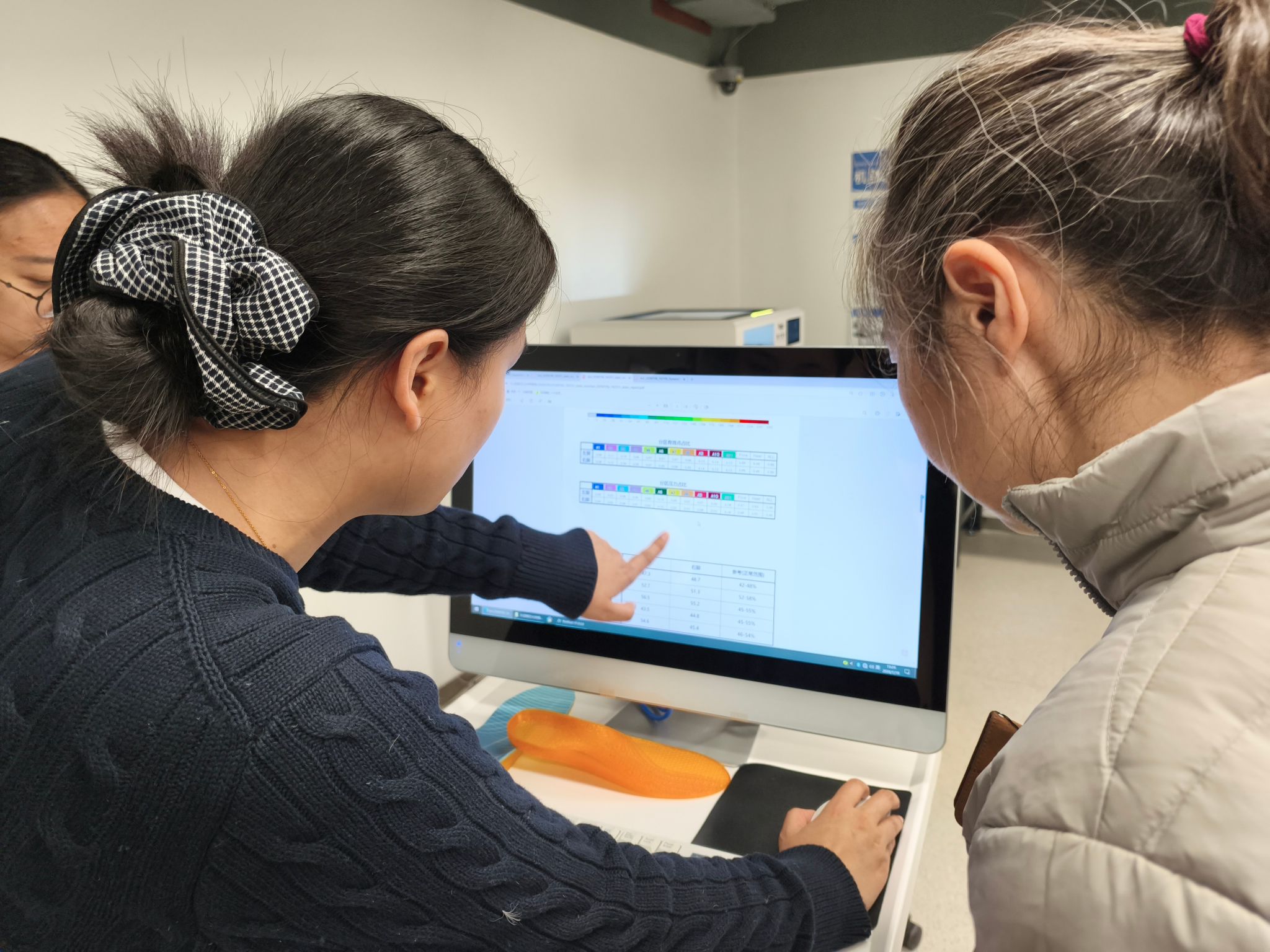 培训过程中,交大老师系统讲解并现场演示了人体足部受力分析系统,涵盖动态与静态两种检测模式,并展示了如何根据检测结果定制个性化矫正鞋垫。随后,STEM办公室的廖老师亲身体验了足部结构三维扫描,以及不同受力状态下足部形态的分析过程。紧接着,培训老师详细介绍了3D打印机的完整使用流程,从数字建模到设备调试,逐步进行了细致讲解。最后,大家共同了解了人体脊柱侧弯扫描仪的功能与应用场景。参与师生表现出浓厚兴趣,纷纷动手操作、积极体验。