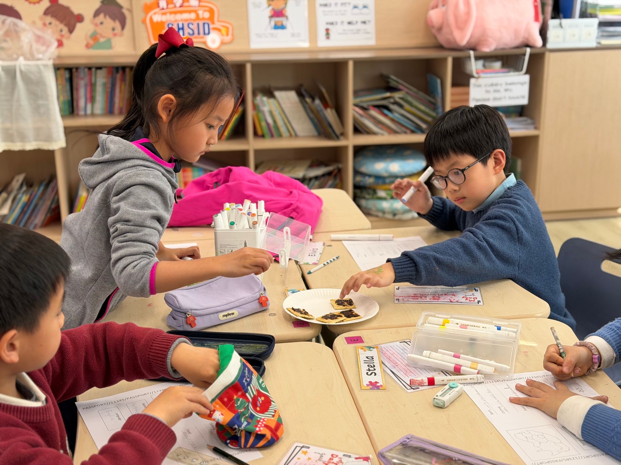 虹口校区今年已是第三年举办地理博览会。今年,每个班级更同时呈现了五个国度!每个小组都邀请了家长亲临校园,协助张贴各个国家的海报、布置展台。学生们负责海报创作,家长则准备特色零食、奖品与互动游戏。当孩子们走近泰国、马来西亚等展台,他们品尝了虾饼、椰汁等风味小吃;希腊与印度展台准备了趣味游戏与奖品;法国、摩洛哥和瑞典则通过精美的文化实物展示引人驻足;南非、墨西哥和巴西的展台不仅充满知识性,更以缤纷色彩吸引了众人的目光。