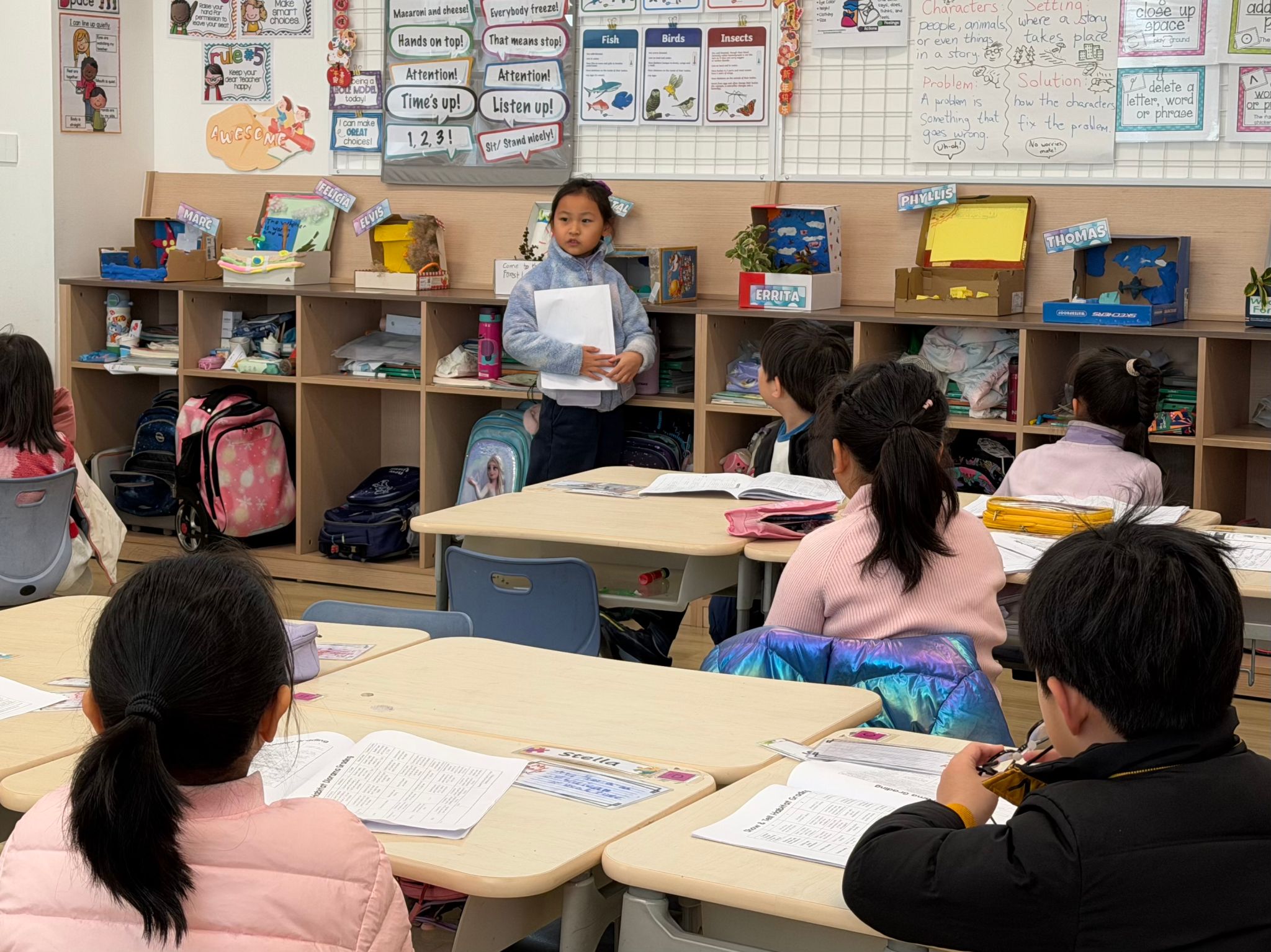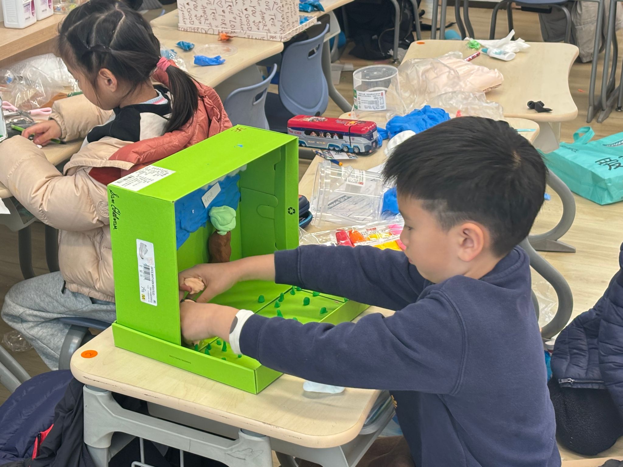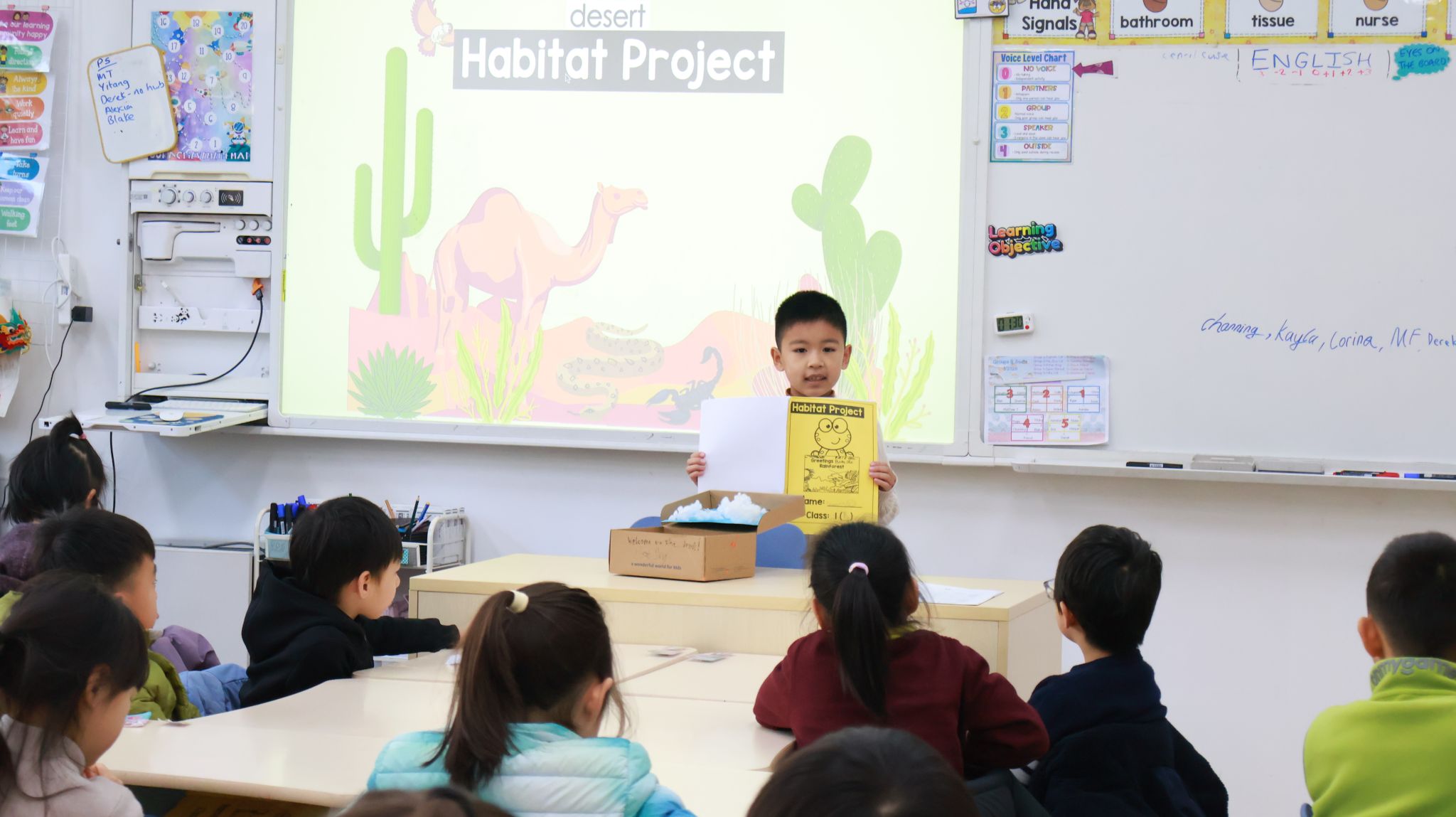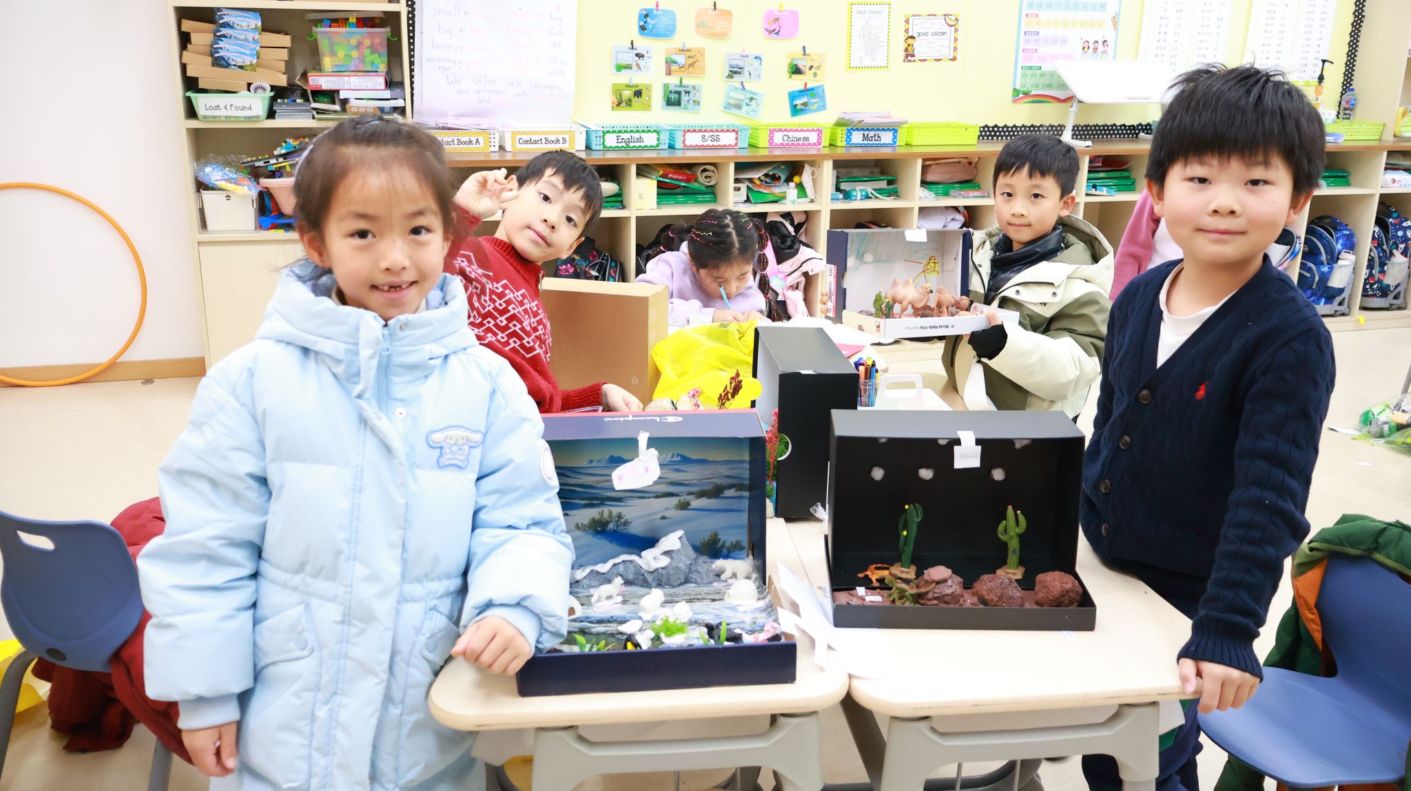 刚刚过去的一周,是一年级学生的“项目周”。项目周期间,教室里处处涌动着创造力的火花。学生们通过跨学科的实践学习,将书本中的动植物栖息地知识转化为立体可触的方式呈现。整整一周里,英语、科学与“展示与讲述”课堂化身为研究工坊、手作空间与演说舞台。