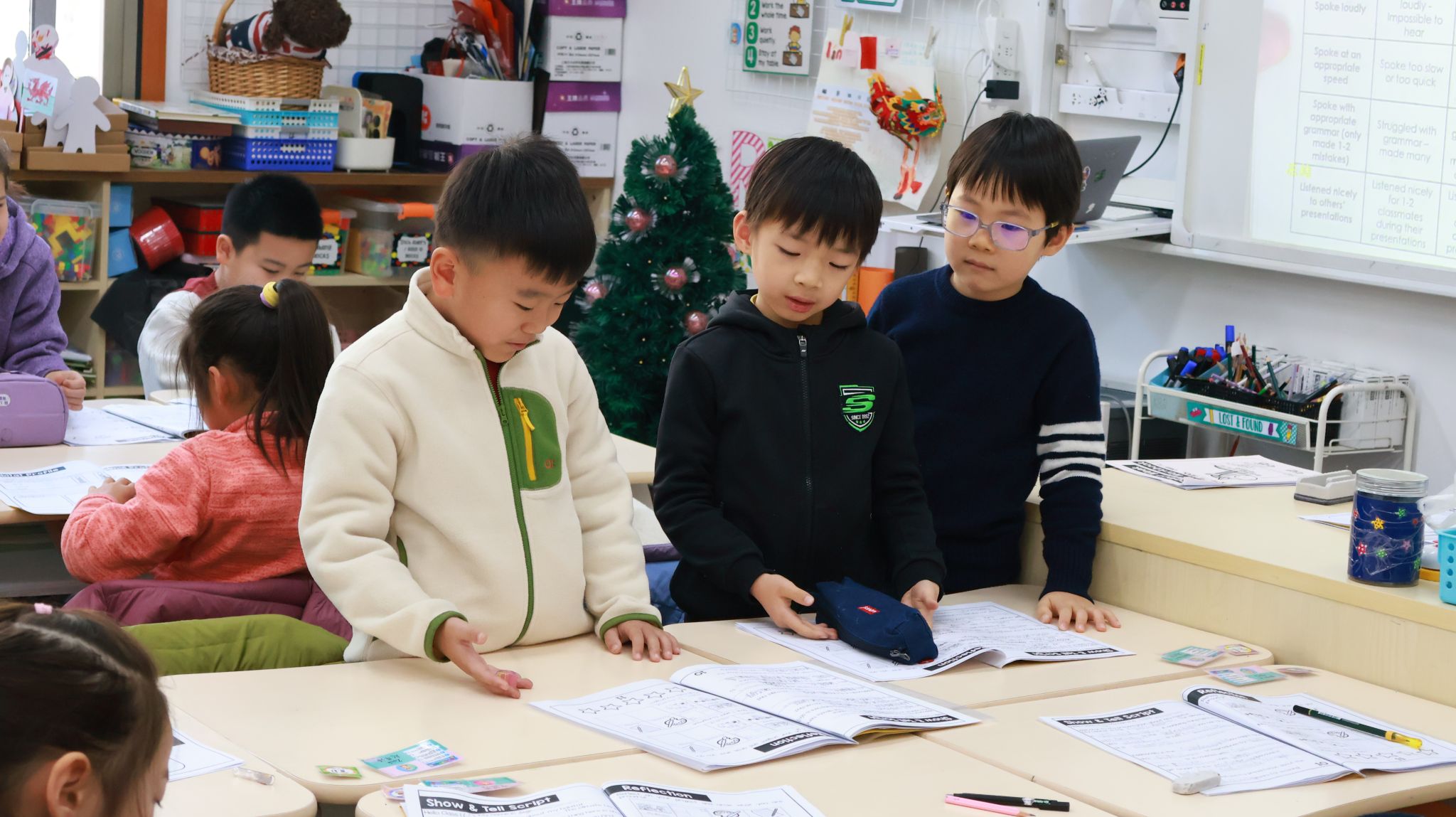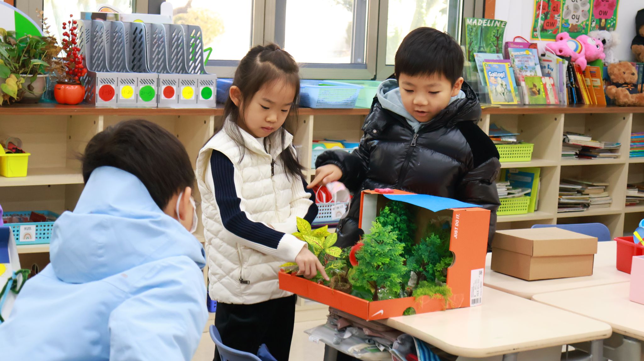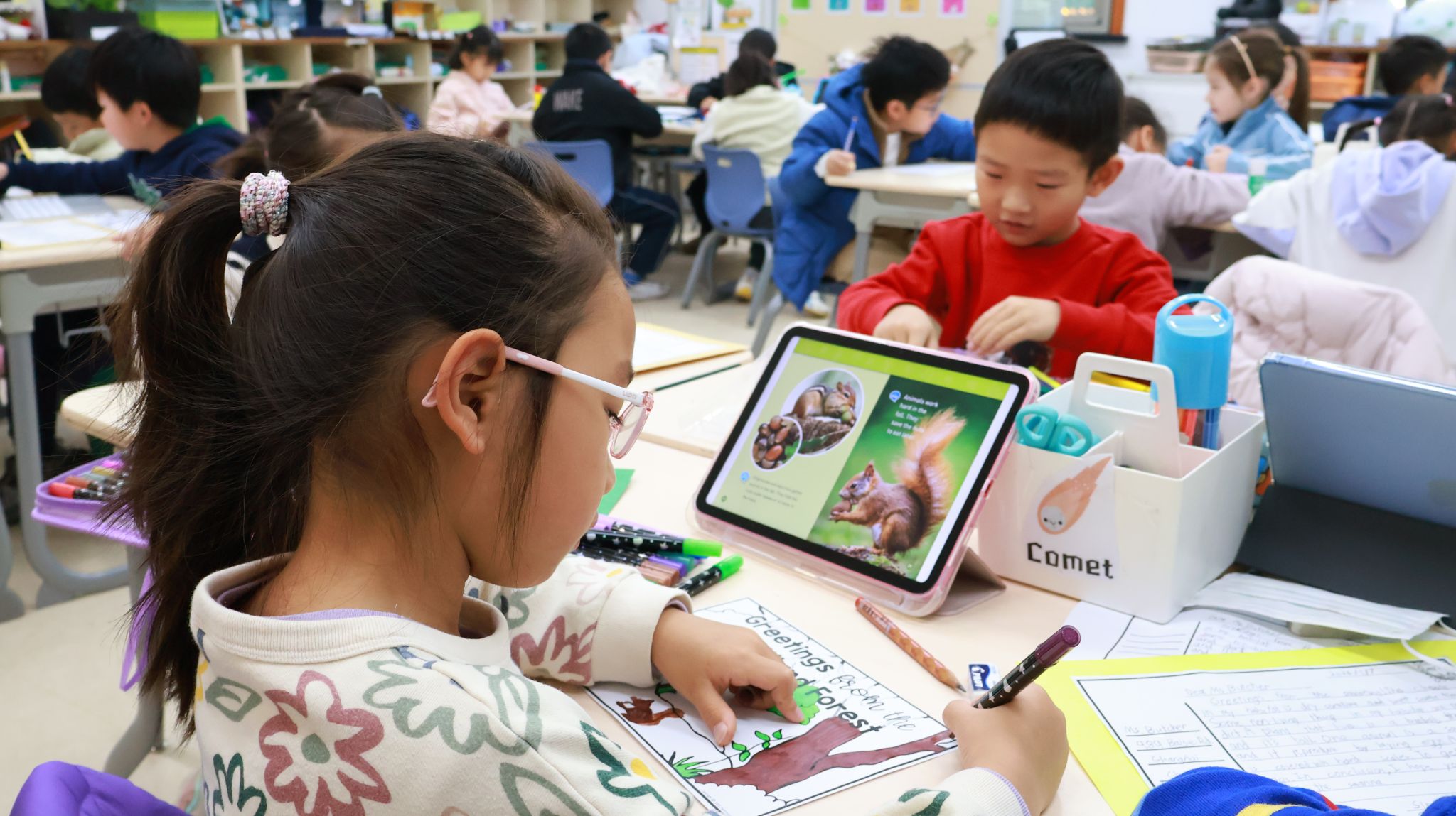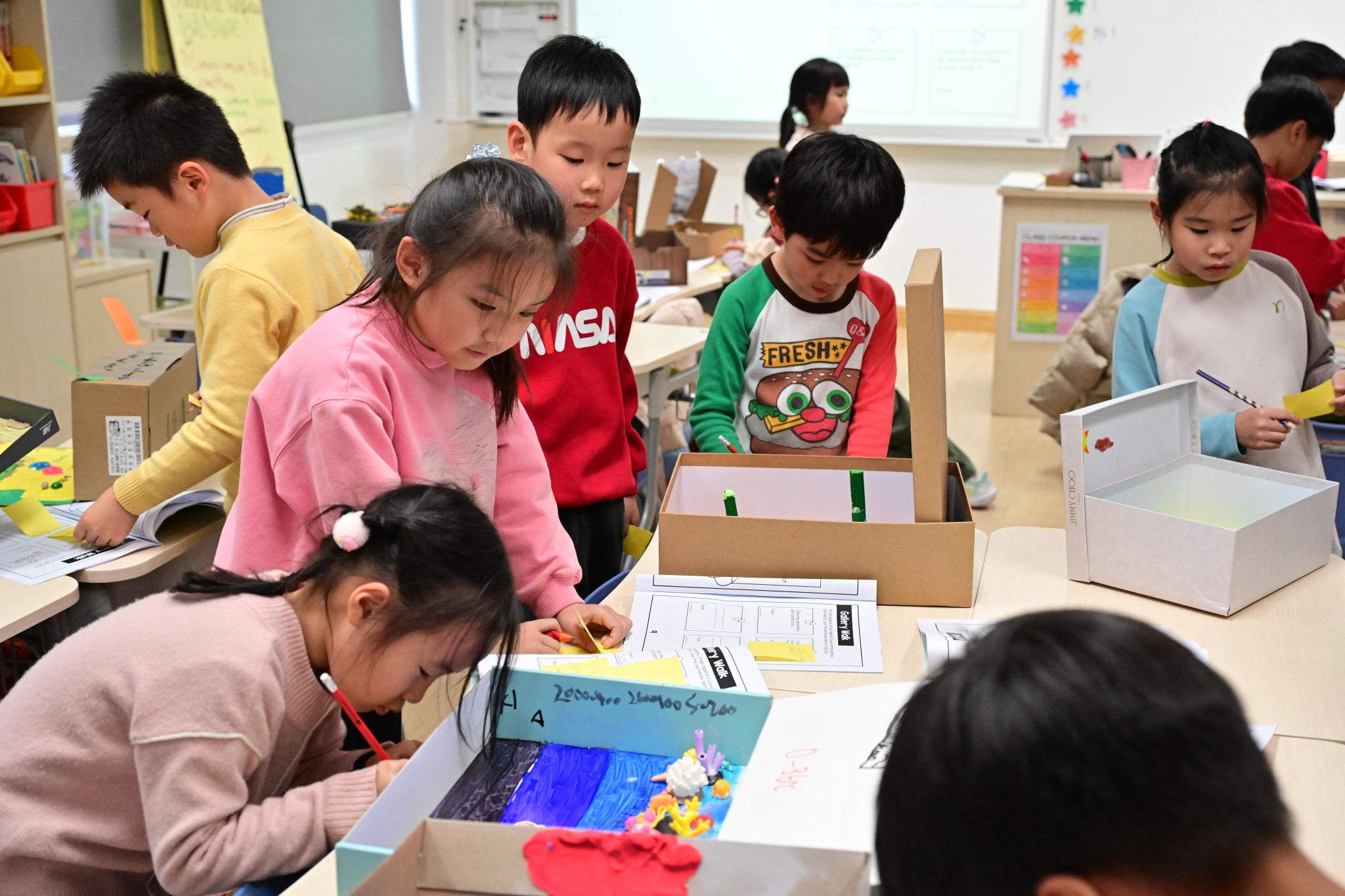 刚刚过去的一周,是一年级学生的“项目周”。项目周期间,教室里处处涌动着创造力的火花。学生们通过跨学科的实践学习,将书本中的动植物栖息地知识转化为立体可触的方式呈现。整整一周里,英语、科学与“展示与讲述”课堂化身为研究工坊、手作空间与演说舞台。