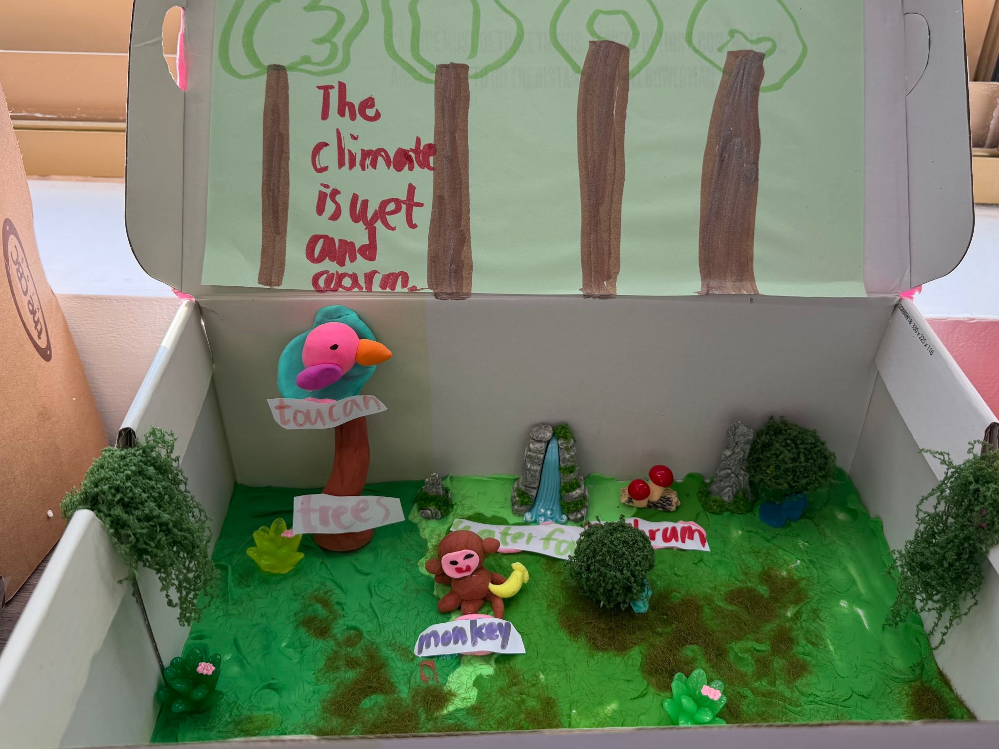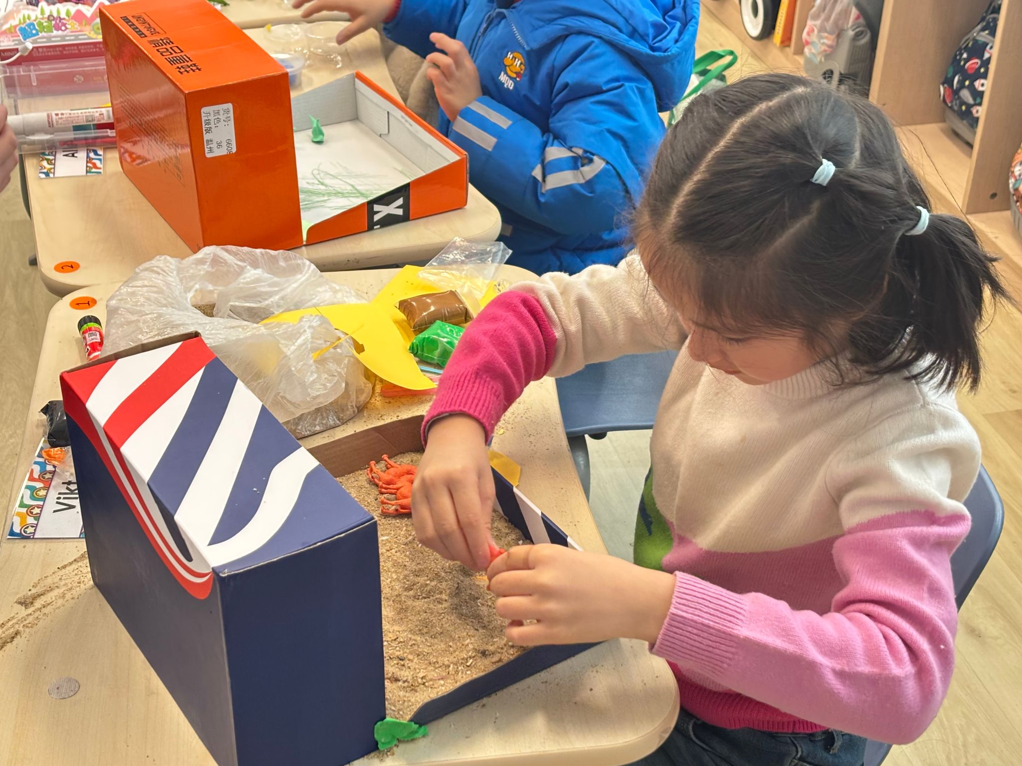 进入中期,教室变身为热闹的工作坊。学生们动手设计并制作生态微缩模型。旧鞋盒等材料在他们的巧思下,幻化成沙漠、海洋、森林与极地,植被、动物与非生物特征一应俱全。每一件作品都凝聚着观察与想象,将平面知识转化为立体实景。