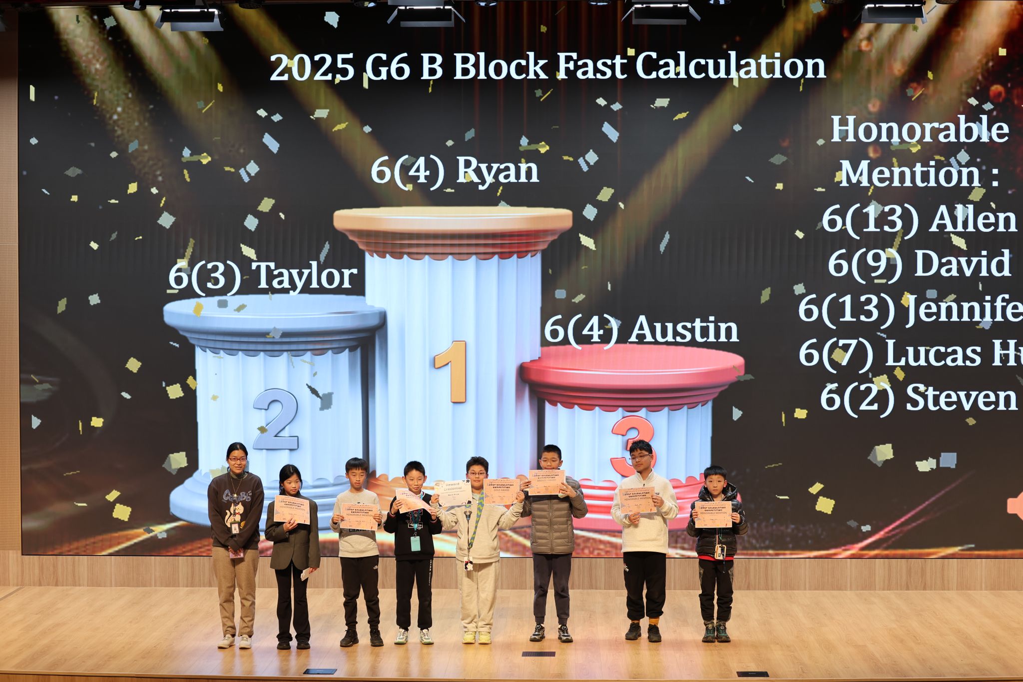 速算比赛考验学生的快速计算能力和心理素质。学生们在有限的时间内完成了一系列高难度的数学题目,从四则运算到复杂的数列推导,学生们展现了非凡的数学功底和沉着冷静的应变能力。