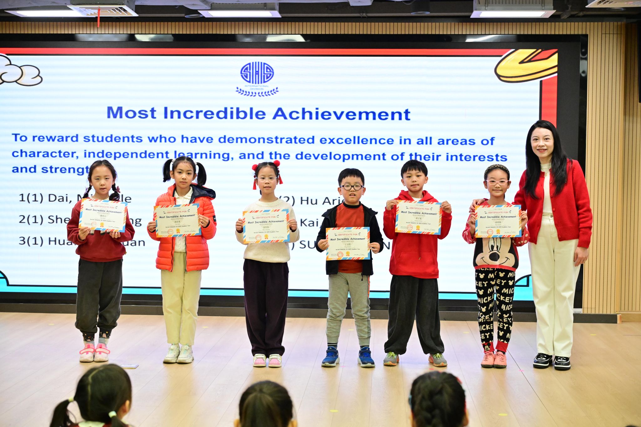 激动人心的颁奖环节随之而来。“Most Remarkable Integrity”“Most Independent Learner”“Most Incredible Achievement”“Super HERO(ES)”等奖项依次揭晓。获奖学生们依次登台,接过奖状,他们的努力与成就赢得了全场热烈的掌声。