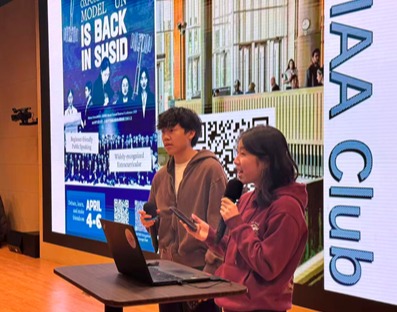 首先,模拟联合国社团(IAA)的代表上台,宣布了一项激动人心的志愿服务机会——牛津全球模拟联合国大会(OxMUN)将于4月4日至6日举行,现正面向十年级招募志愿者。OxMUN作为一项备受国际认可、对初学者友好的活动,为同学们提供了锻炼公共演讲能力、拓展全球视野的绝佳平台。他们鼓励大家积极参与,在志愿服务中积累实践经验。
