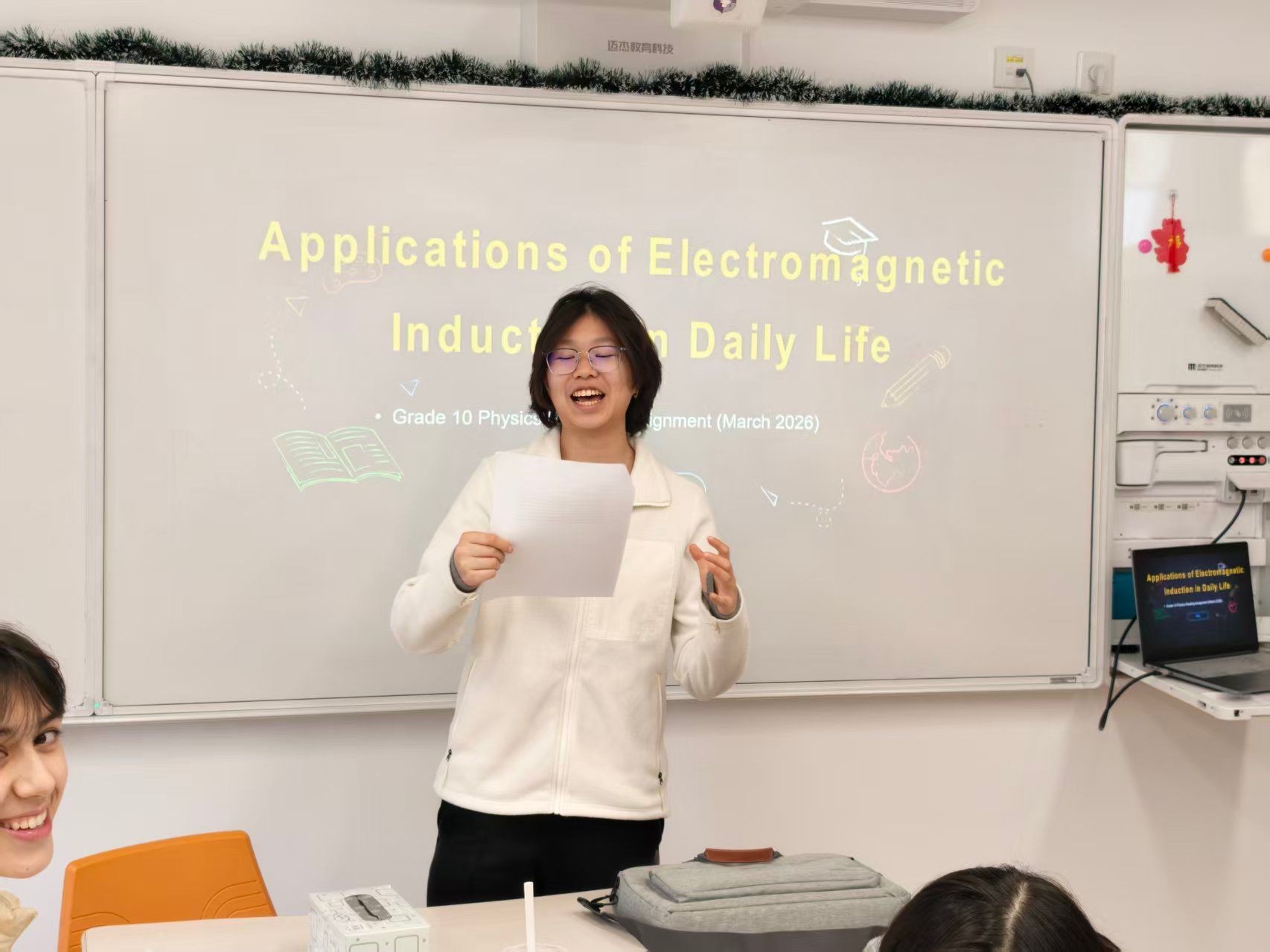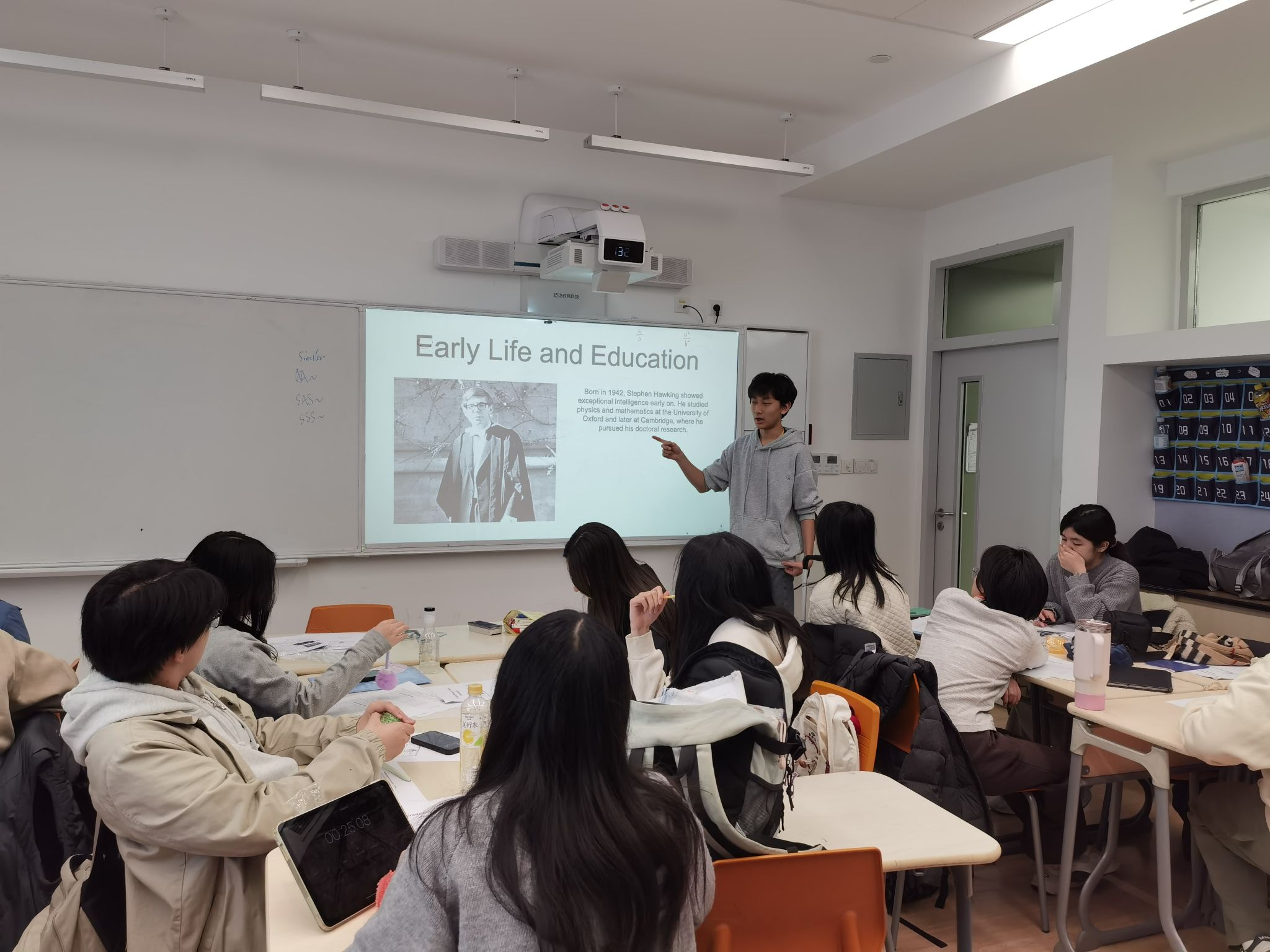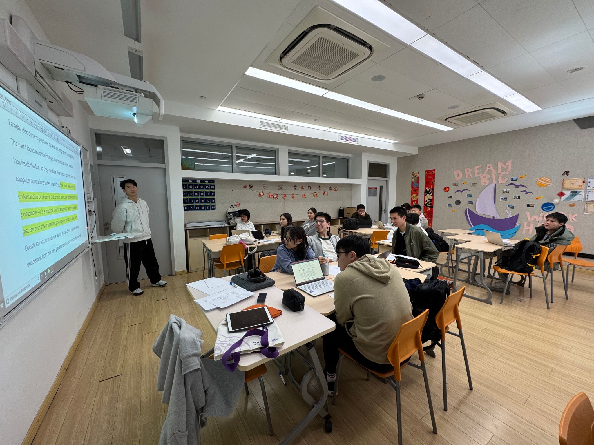 本次活动中,9至12年级学生围绕教师推荐的主题展开自主阅读,内容涵盖物理学家的生平与科研之路、当代物理学前沿发展等多元方向。在课堂上,学生们轮流登台,以PPT、演讲或互动问答等形式,分享自己的阅读收获。有的同学聚焦于爱因斯坦的科学思想与人文情怀,有的则多方调研解读量子计算的最新进展,分享内容视野开阔,观点新颖,引发同学们的积极讨论与深入思考。从科学家的执着追求到未知领域的不懈追寻,每一个分享都点燃了课堂的思想火花。