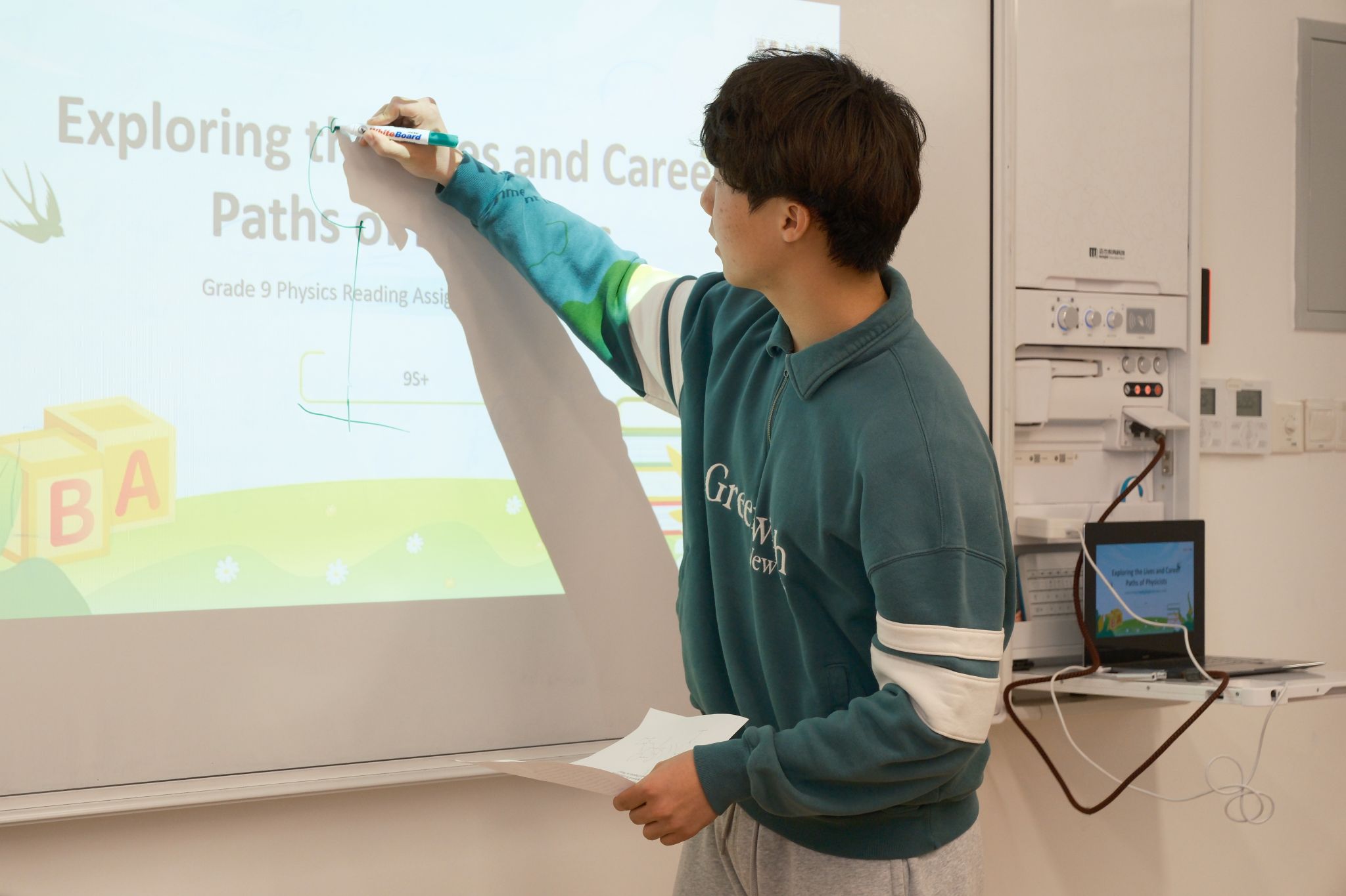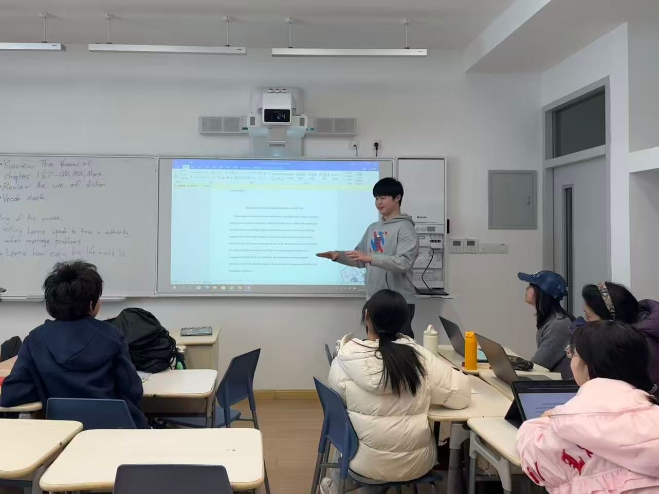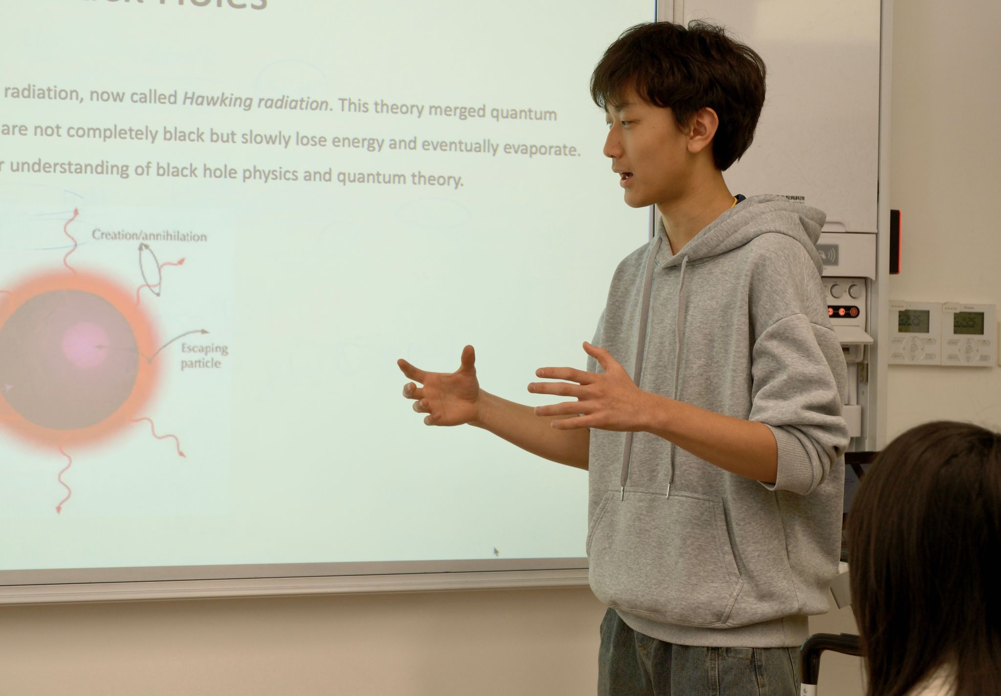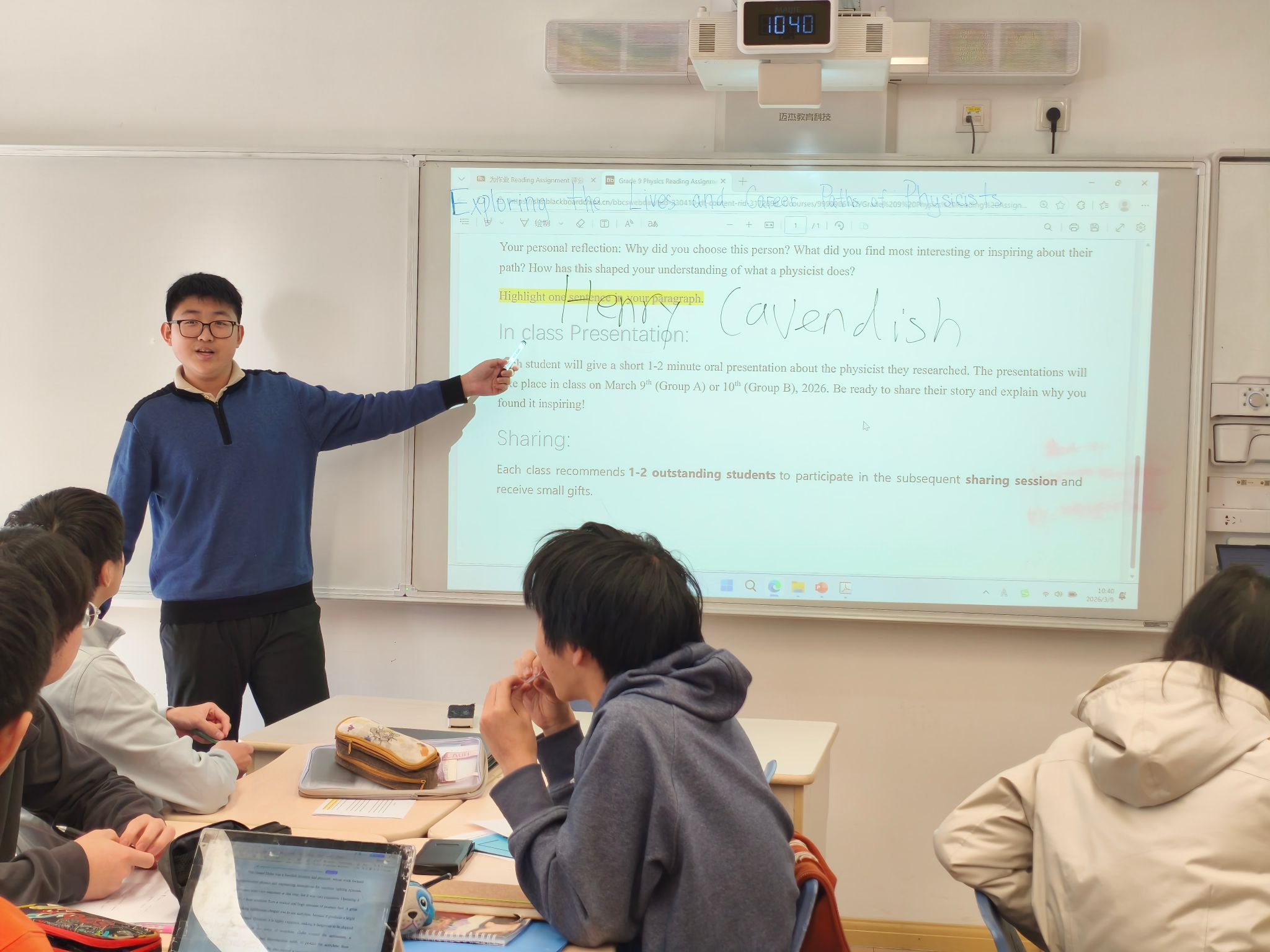 本次活动中,9至12年级学生围绕教师推荐的主题展开自主阅读,内容涵盖物理学家的生平与科研之路、当代物理学前沿发展等多元方向。在课堂上,学生们轮流登台,以PPT、演讲或互动问答等形式,分享自己的阅读收获。有的同学聚焦于爱因斯坦的科学思想与人文情怀,有的则多方调研解读量子计算的最新进展,分享内容视野开阔,观点新颖,引发同学们的积极讨论与深入思考。从科学家的执着追求到未知领域的不懈追寻,每一个分享都点燃了课堂的思想火花。