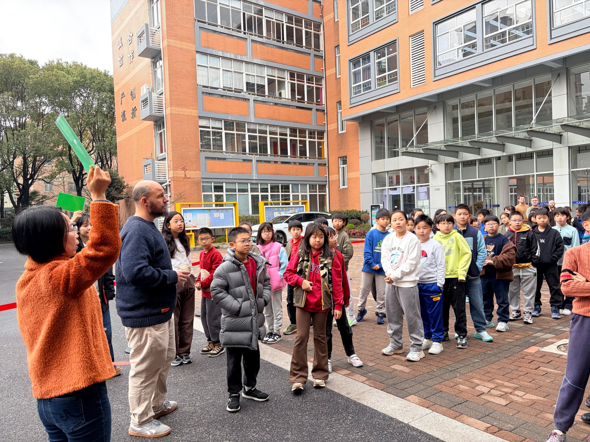 在短短几分钟内,全体师生顺利抵达操场指定集合点。各班迅速完成人数清点,并通过举牌方式确认“全员到齐”。这一环节不仅体现了班级管理的高效性,也强化了学生的集体意识与责任感。随着各班确认信号的依次完成,本次消防演练圆满结束。