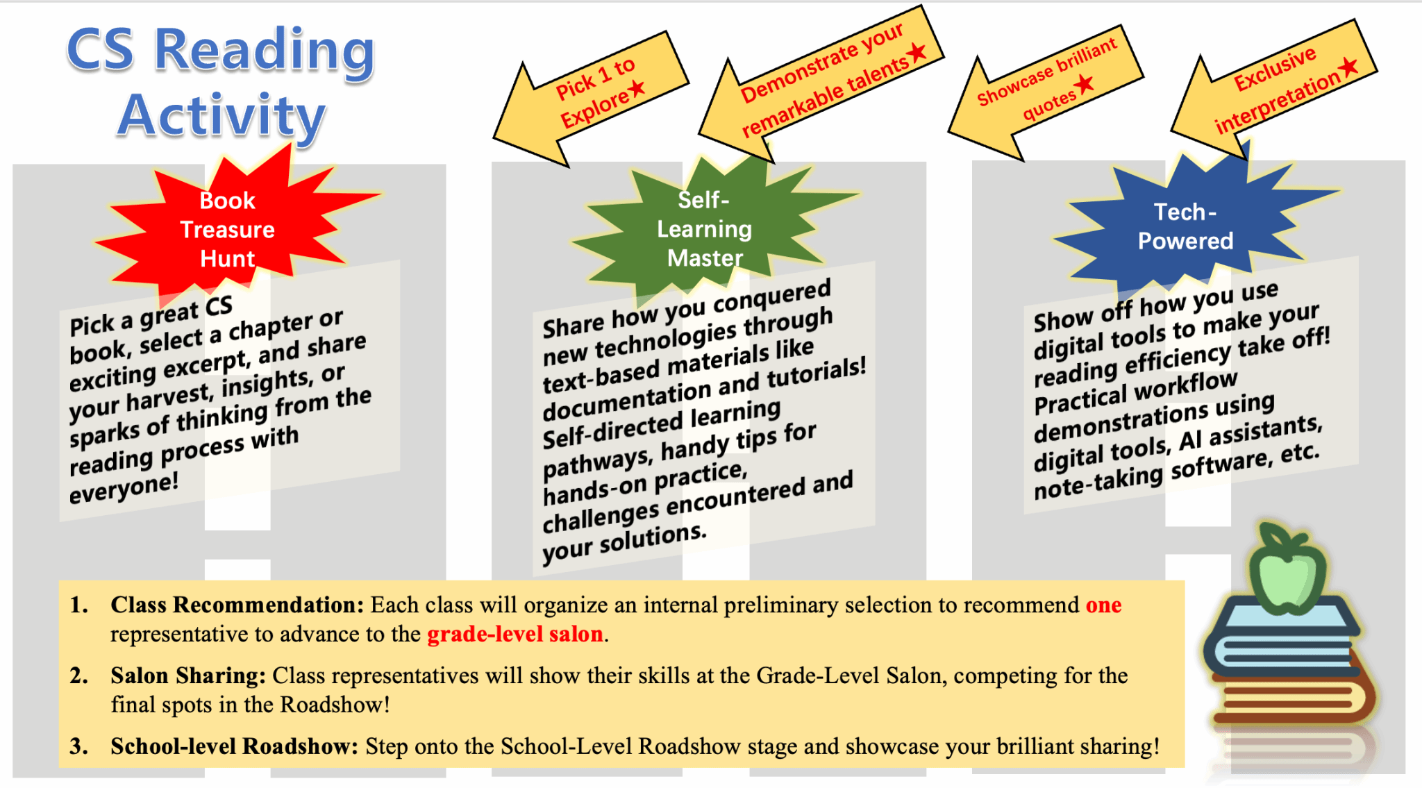 书籍寻宝(Book Treasure Hunt):代表们精选经典计算机科学书籍的核心章节,分享阅读过程中的收获、洞见与思想火花,带领在场师生领略技术经典的深邃魅力。