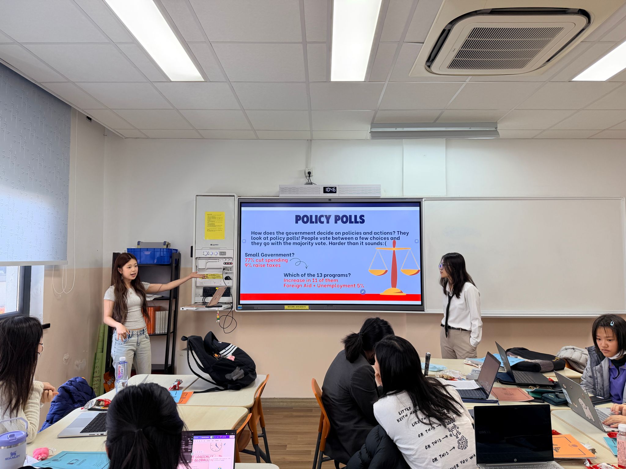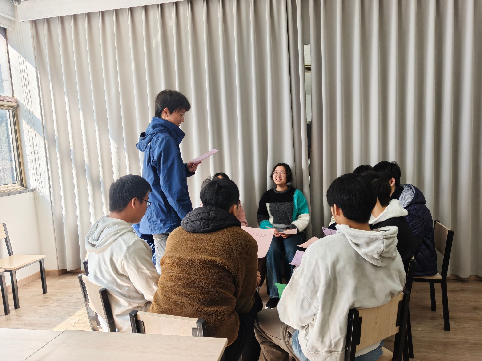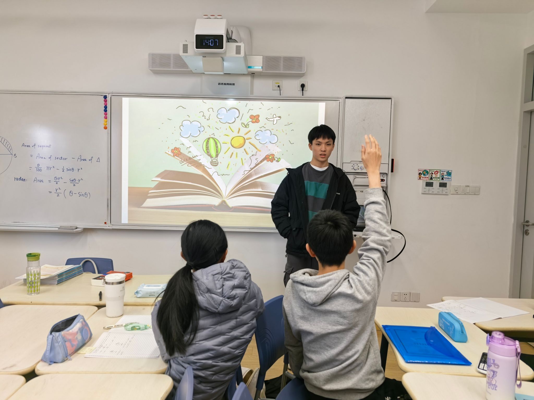 各年级数学教学班也在这两周于课堂内积极开展了阅读分享活动,将“理性之眼”的视角延伸至日常教学的点滴之中。老师们结合课程特点,为学生推荐适合的阅读资料,并以丰富多样的形式鼓励每一位学生主动阅读、记录所思所感。有的班级在线上平台的讨论版交流观点,碰撞思维火花;有的班级合作制作海报,用图文呈现数学之美;还有的班级在洒满阳光的教室里围坐一圈,声情并茂地朗读自己的阅读金句……有学生感慨道:“History is not a line but a branch of probabilities.”(历史不是一条直线,而是一枝概率的分岔。)学生们徜徉的不仅是数学知识的海洋,更从数学这扇独特的透镜中重新打量世界——数学不仅是一门学科,更是一种理解世界的思维方式。在这过程中,每一位学生都在课堂上拥有了属于自己的发言时刻,让阅读的收获从个体走向集体,从沉默走向表达。